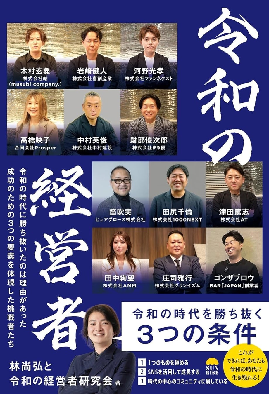 この度、林尚弘さんが注目する起業家の一人として取材・収録していただき、本日無事に出版の日を迎えることができました。 本書で描かれているのは、机上の理論ではなく、「現場で起きたリアル」です。私自身、共にご一緒させていただいた木村玄象さん(ゴーストレストランFC)、中村英俊さん(中村建設)、田中絢望さん(美容サロンコンサルティング)といった各業界の最前線を走る11名の方々のストーリーを読み、大変多くの学びがありました。