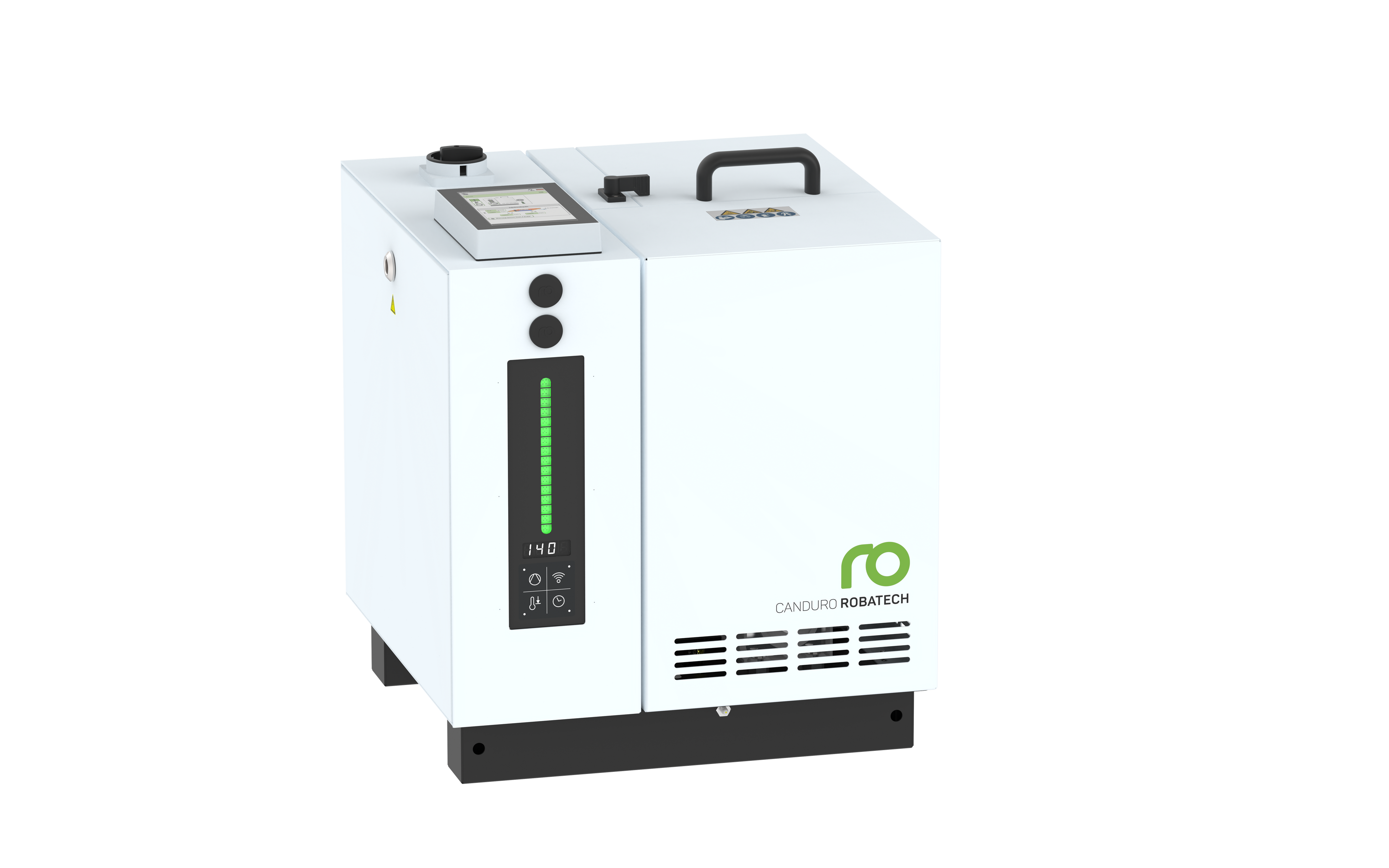 Canduro 2の開発では、直感的な操作性とメンテナンス性に特に重点を置きました。関連するすべてのコンポーネントへ容易にアクセス可能で、清掃や保守作業も簡単に行えます。本機はホストマシン、タッチディスプレイ、またはモバイルデバイスから操作できます。さらにRobatechは木工プロセスのためのエッジバンディング専用のアプリケーションソフトウェアも提供しています。