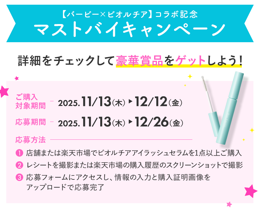「ビオまつ毛」として親しまれる人気まつ毛美容液が、人気バービーグッズなどが当たる特別企画を実施中。