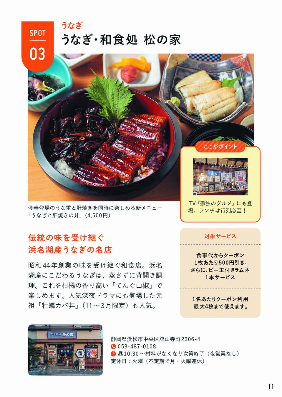 ・うなぎ専門店やカフェ、温泉などの浜名湖周辺で利用できるクーポン券。