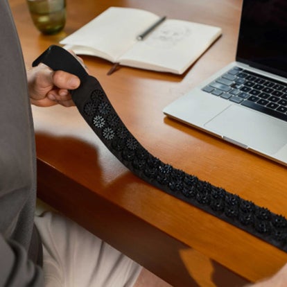バッグ&ベリーバンドは、Shakti独自のスパイクを備えたアキュプレッシャーパッドを、体にフィットするベルトに組み合わせたベルト型セルフケアグッズです。腰やお腹など緊張が溜まりやすい部位に