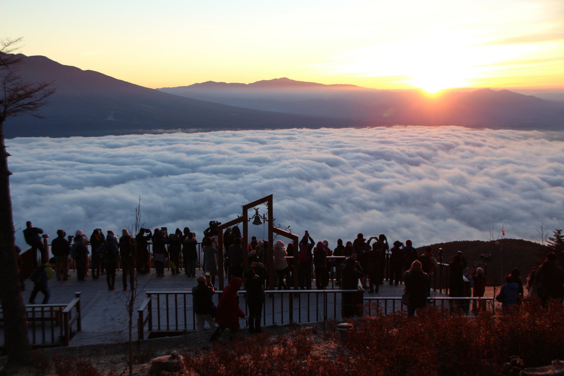 土日祝日に運行する「プレミアム雲海ゴンドラ」では、幻想的な雲海に出会える日が多い。10月は降雨の多い気象条件にもかかわらず、運行日の雲海発生率は月間で89%を記録した。日の出時間帯には、太陽光が雲の表面に当たり、雲全体が淡い黄金色に見えることがある。展望台からは、谷を覆う白い雲と、その上に突き出す八ヶ岳の峰が同時に見られ、雲の高さや厚みの変化により視界が変わり続ける。ゴンドラでアクセスできるため、登山装備がなくても楽しめる手軽さが評価されている。