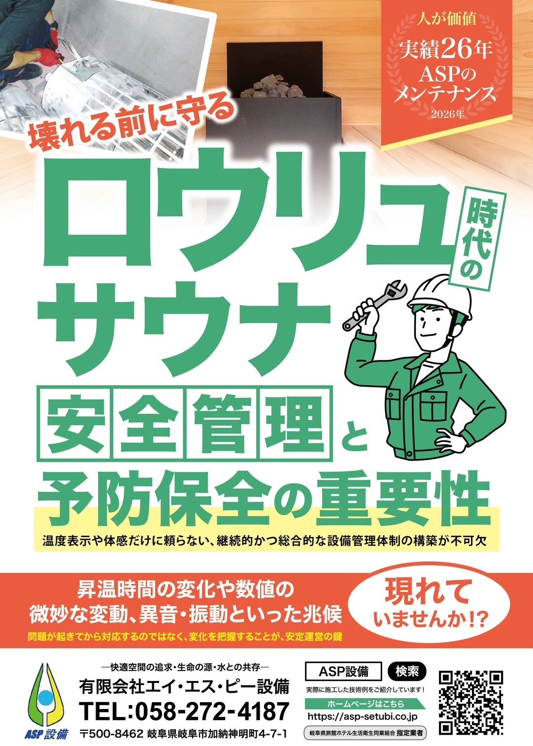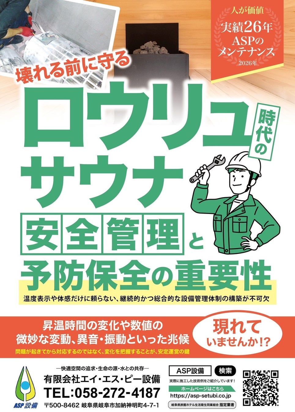 有限会社エイ・エス・ピー設備は、地域に根ざした設備会社として、サウナ施設の安全管理体制の高度化を支え、持続可能な運営を裏側から支えていく考えだ。