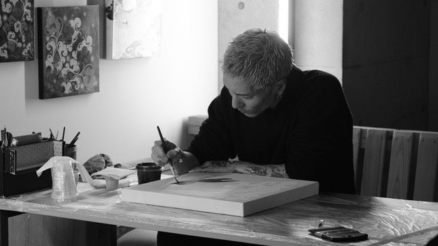 神社仏閣やその周辺を彩る植物の美しさに琴線が触れた幼少期の原体験がフラッシュバックし、独特の雲柄「遊雲(Yu-Un)」が完成する。