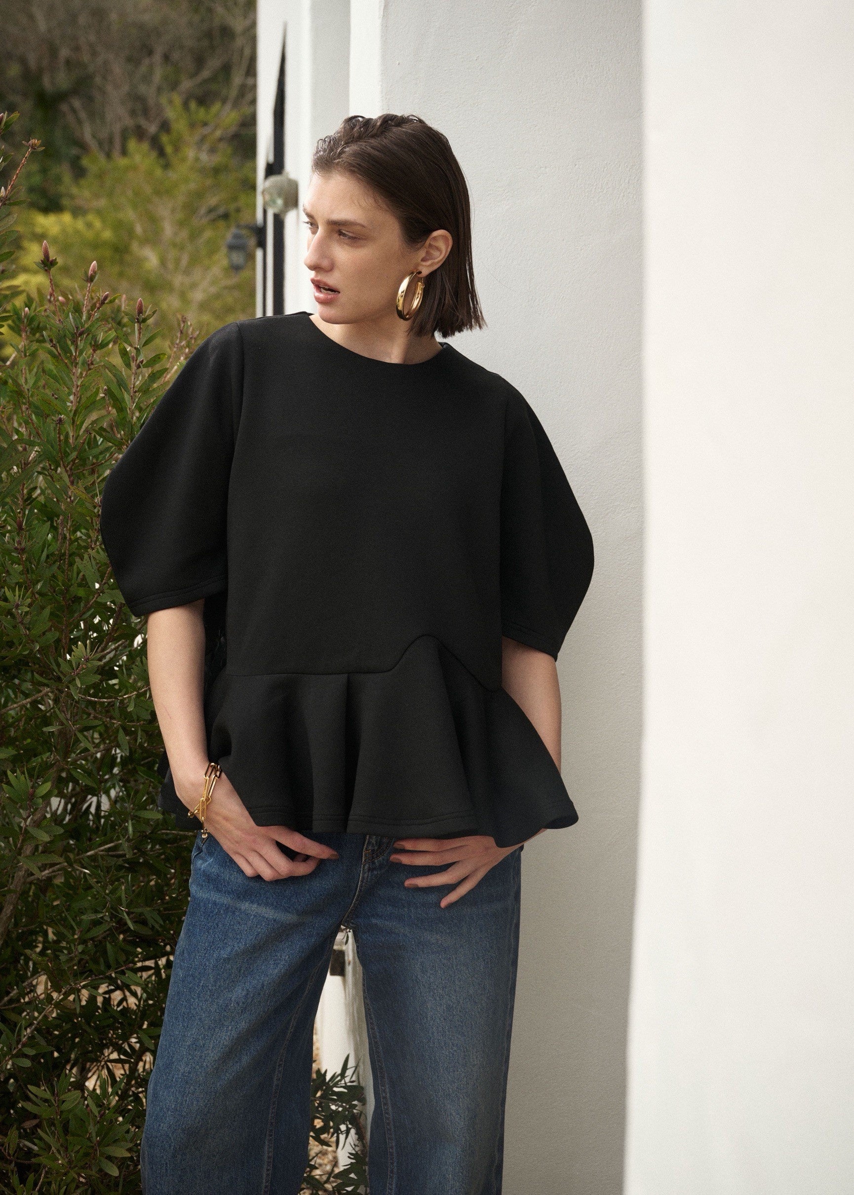 気になる二の腕や肩の厚みはカバーしつつ、デコルテを綺麗に見せながら華奢見えも叶えるBig Collar Strap Pullover(写真左)、立体的なシルエットで一枚でパッと華やかに見せてくれ、ワンツーコーデがグッとランクアップするPuff Sleeve Peplum Pullover(写真右)など、大人ならではの体型悩みに寄り添いつつ袖を通すだけで気持ちが明るくなるようなトップスが揃う。