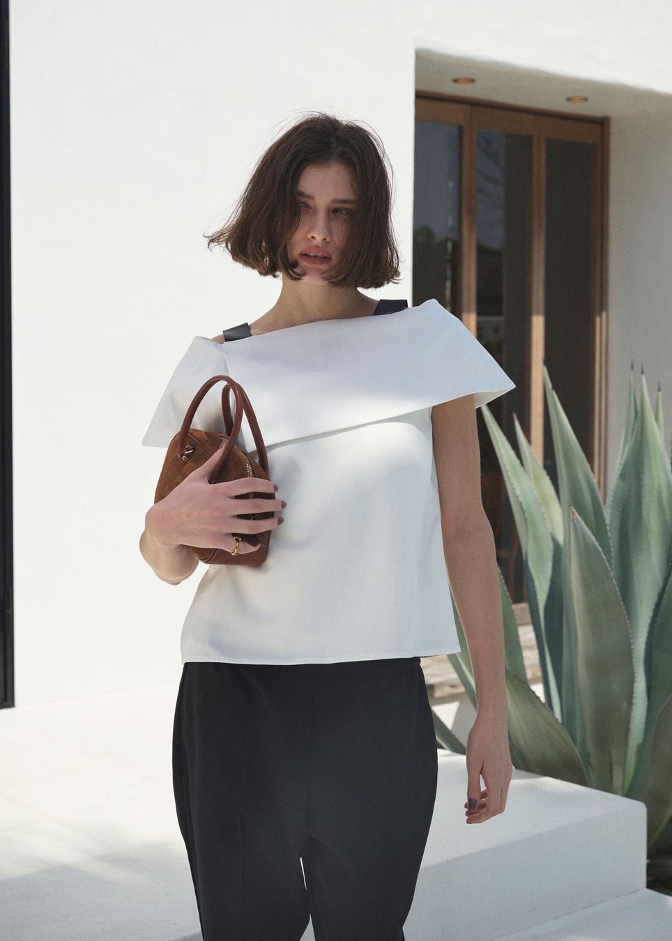 今すぐはもちろん、真夏も軽やかに着られるシアーな素材感にバックリボンがほんのり甘い大人のブラウスだ。