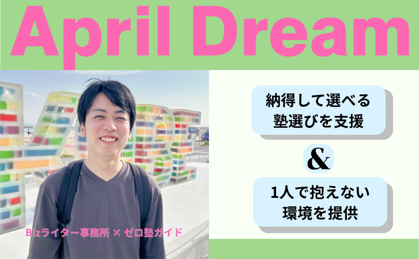 当社は、4月1日を夢を発信する日にしようとするApril Dreamに賛同しています。このプレスリリースは「Bizライター事務所/ゼロ塾ガイド」の夢です。