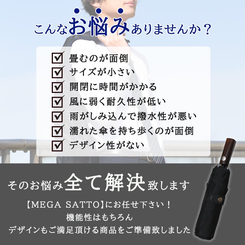 “もう、たたまなくていい”折りたたみ傘の120cm大判モデル登場。1秒で整う形状記憶傘「MEGA SATTO」発売