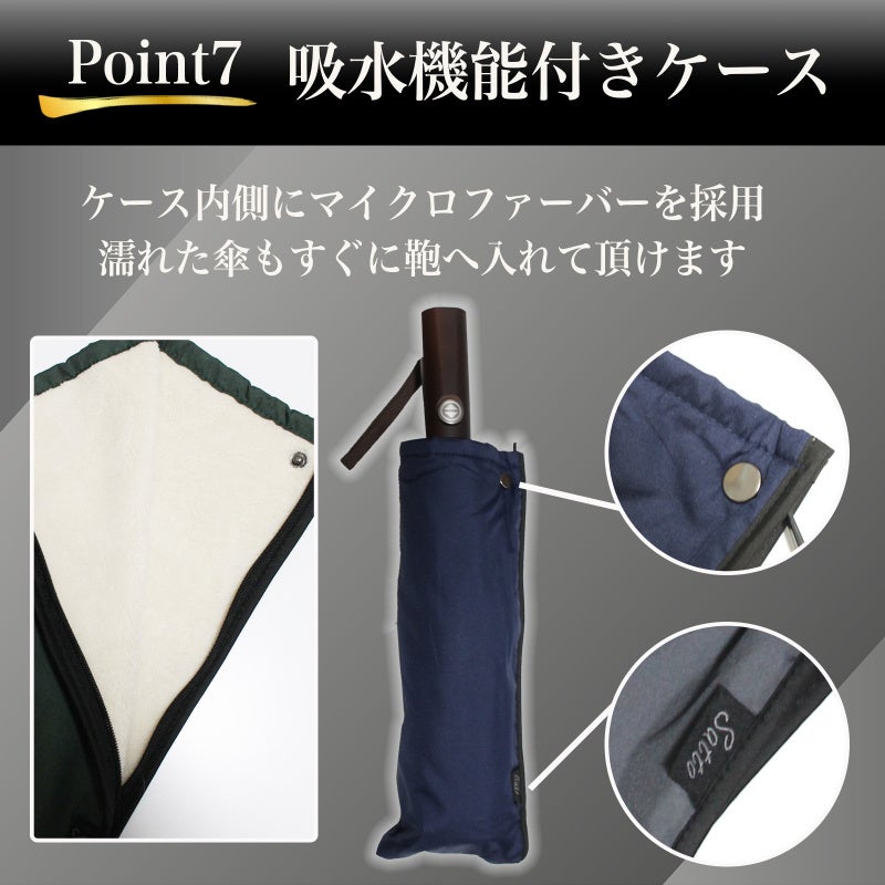 傘生地には高密度ポリエステルを採用し、撥水加工を施しています。