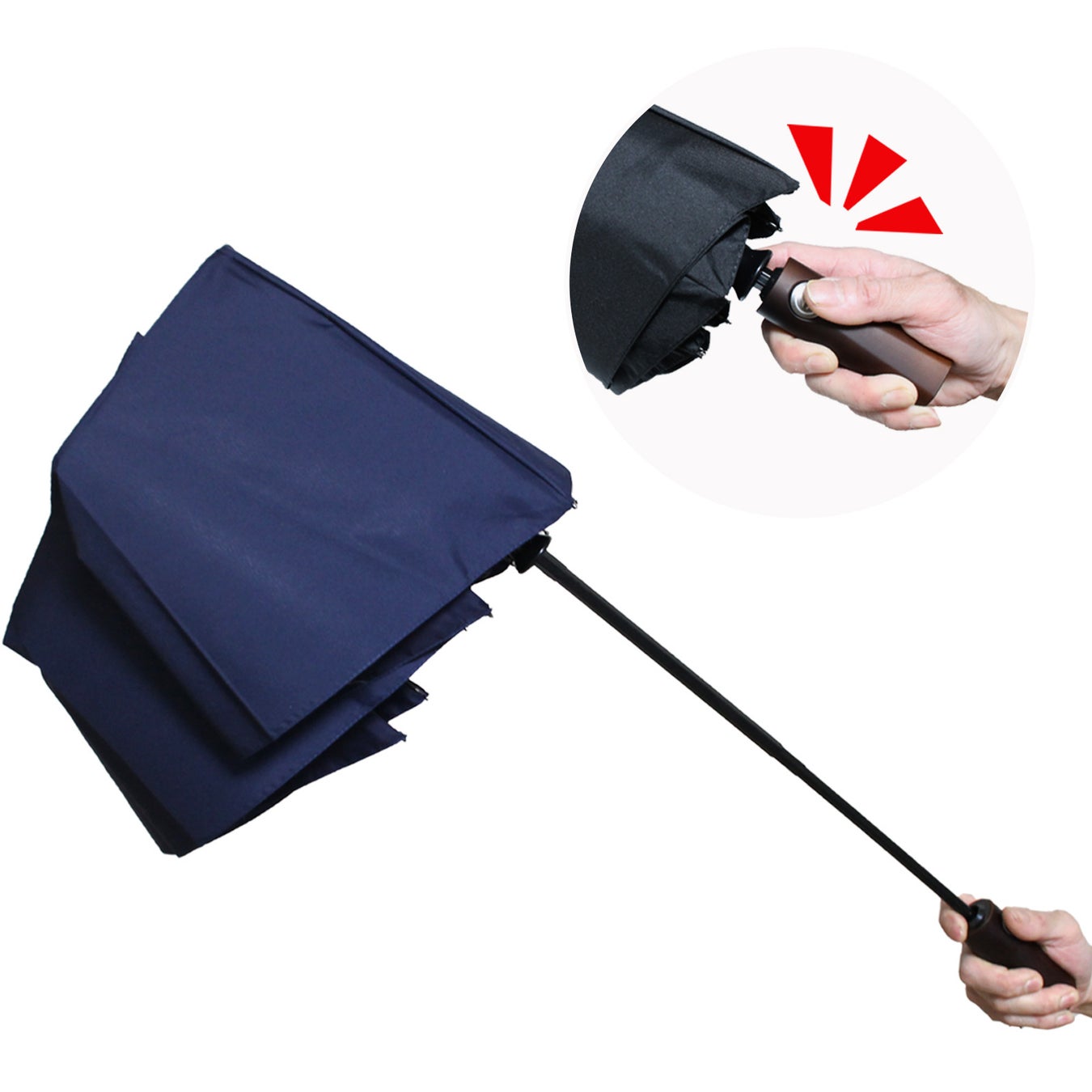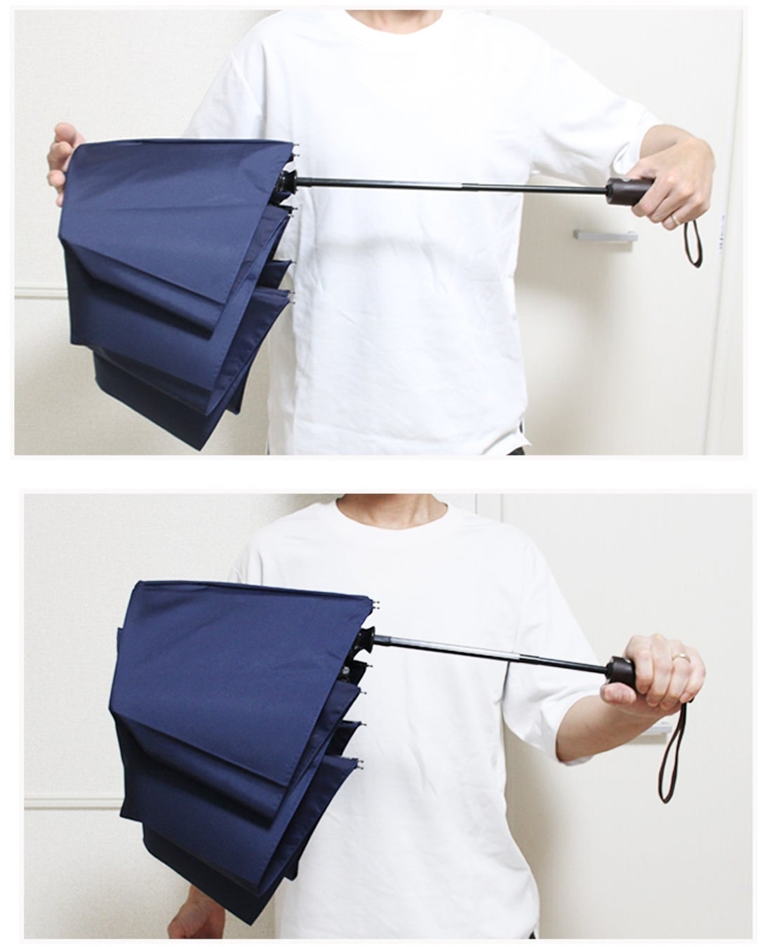 折りたたみ傘では、柄を収納する際に勢いよく戻ることで手や顔に当たるリスクがあります。