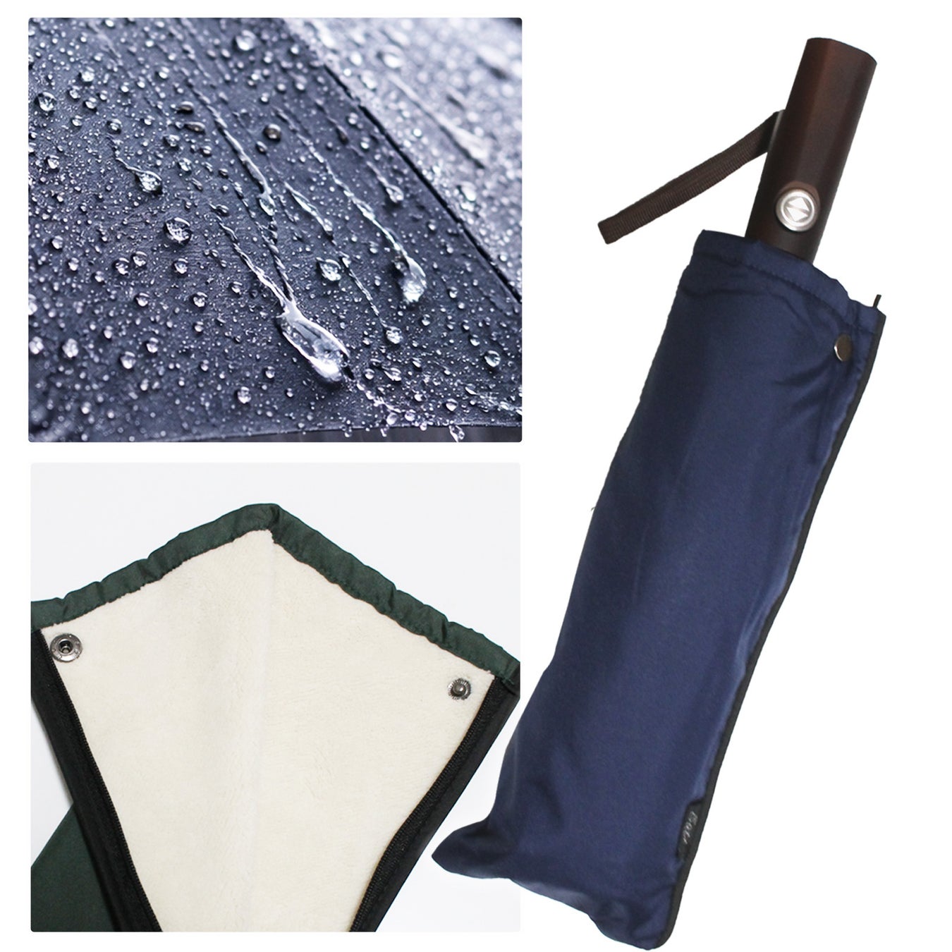 濡れた傘を収納しても水分を吸収し、バッグの中が濡れにくい設計です。