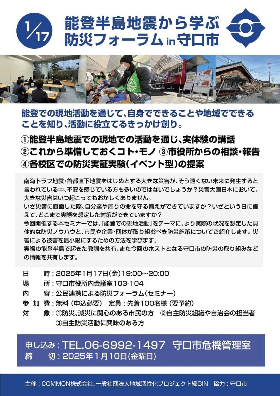 • 団体紹介:COMMON株式会社は、「共創による地域と企業の持続的な価値づくり」をミッションに、全国の自治体・企業・市民団体と連携した公民共創型のまちづくりや防災・観光・教育分野のプロジェクトを企画・運営するソーシャルビジネス企業です。公民連携の会員制プラットフォーム事業や企業版ふるさと納税を活用した地域活性化や、移動型アンテナショップ「コモンズマルシェ」など、民間のノウハウを活かした地域課題の解決に取り組んでいます。各地の自治体との災害時連携協定や、防災イベント・フォーラムの企画を通じて、企業間連携による災害対応ネットワークづくりも推進。地域・企業・個人が“つながり合う”仕組みを構築し、未来志向の共創社会を目指しています。