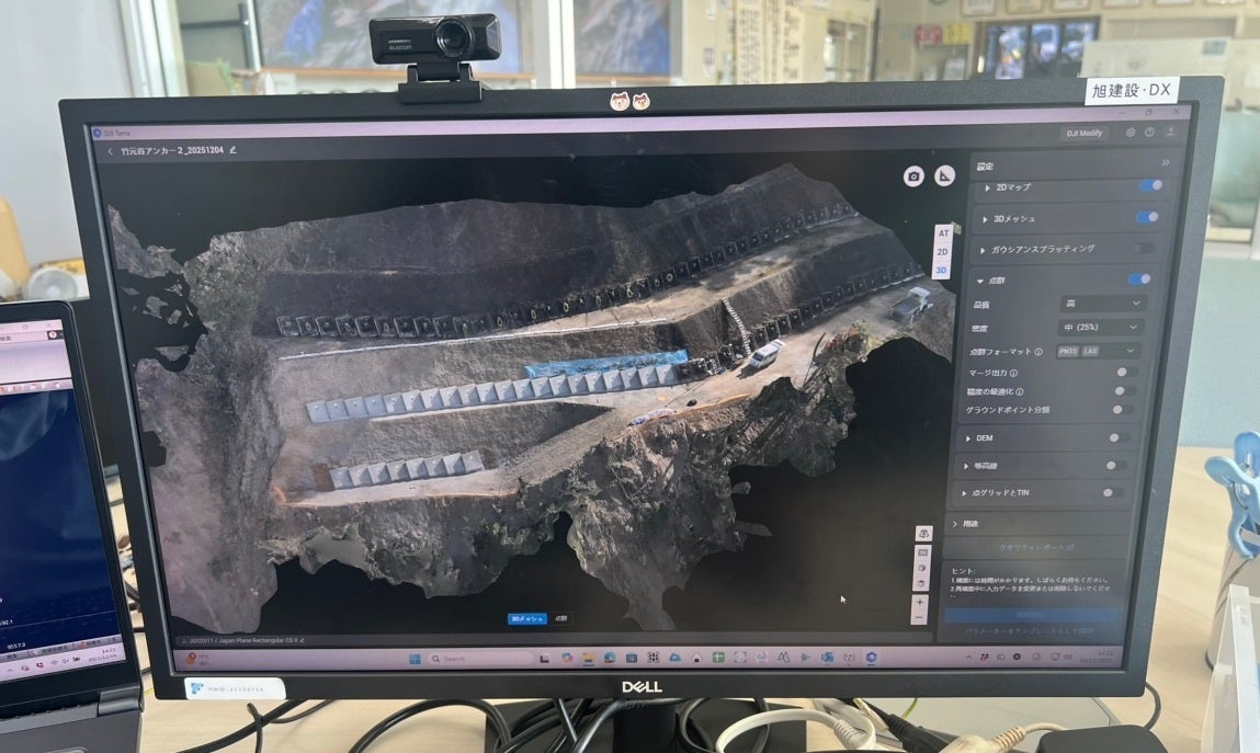 「3次元測量データの取得」および「現場空撮」を完遂し、今後の移動時間削減等による生産性向上の道筋をつけました。
