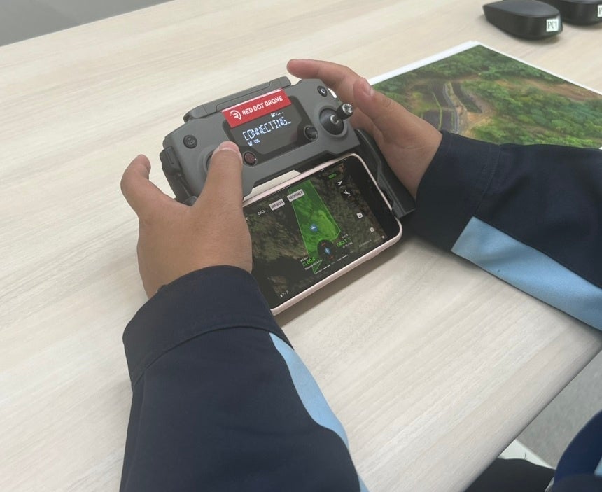 2.「俯瞰カメラ」による空間認識の確保: 遠隔操縦者がドローンの搭載カメラ映像(FPV)だけに頼ると、周囲の樹木等との距離感がつかめず衝突リスクが高まります。そこで現場全体を見渡す「俯瞰カメラ」を別途設置。本社側でドローンと周囲の障害物の位置関係を客観的に把握しながらの操縦を実現しました。