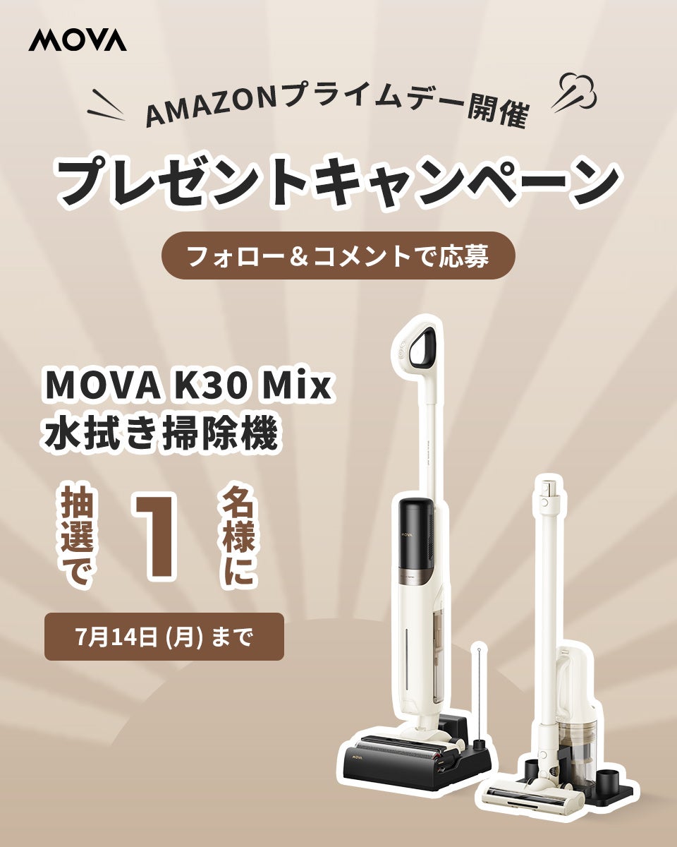 7月7日(月)~7月14日(月)までの期間に、対象のMOVA公式SNSアカウントをフォローし、キャンペーン投稿へコメントをいただいた方の中から抽選で「MOVA K30 Mix」をプレゼントします。各SNSにつき1名様ずつ、計2名様に製品が当たります。