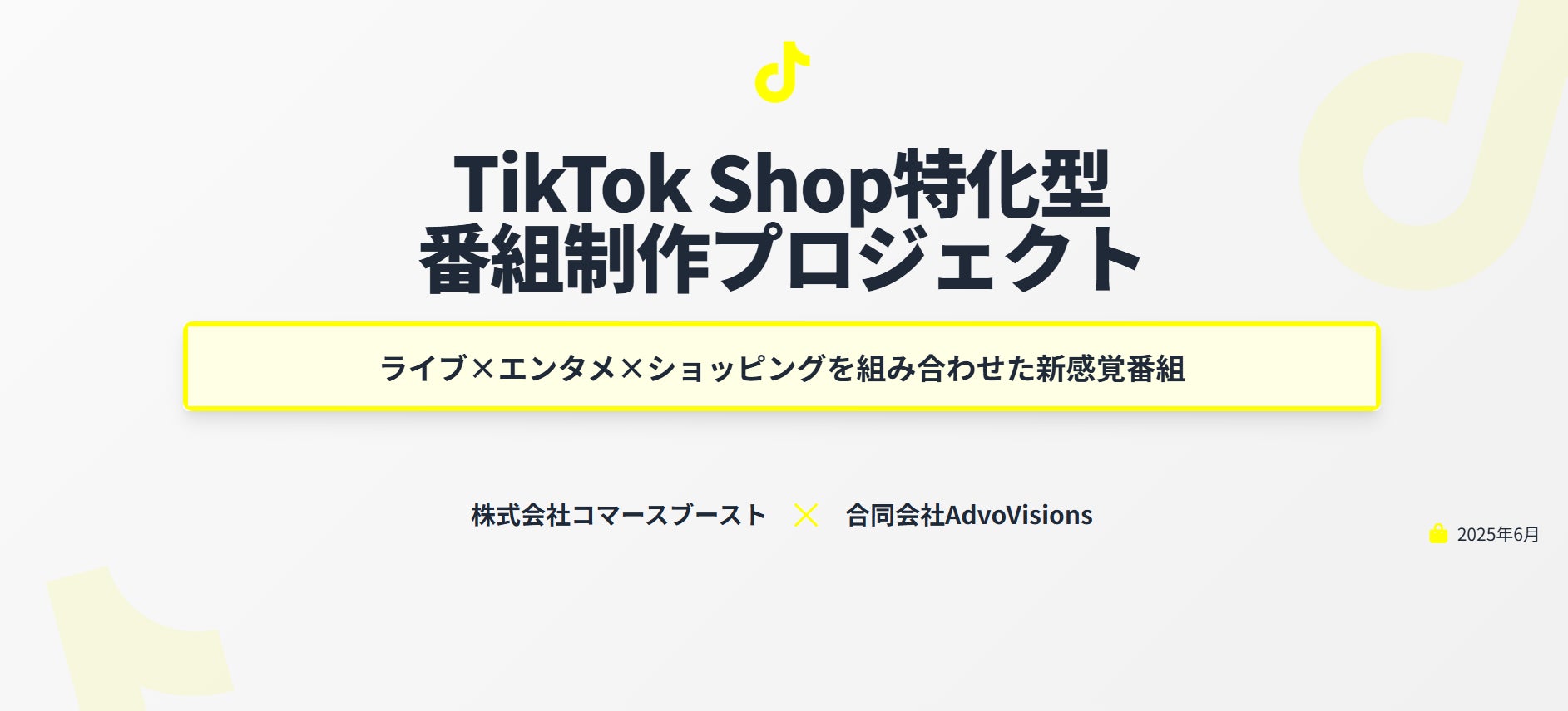 株式会社コマースブースト(東京都、代表取締役:宮原和也)は、映像制作会社 合同会社AdvoVisions(東京都、代表:丸山弘太郎)と提携し、TikTok Shopに特化したライブコマース番組の共同制作プロジェクトを始動しました。