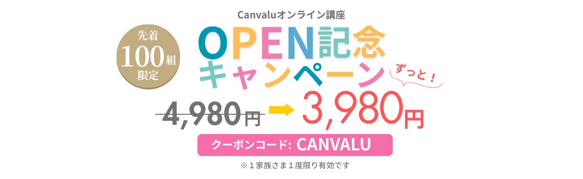 親子2アカウントで利用できるCanva講座が、通常月額4,980円→3,980円で利用できる特別キャンペーンを実施しています。