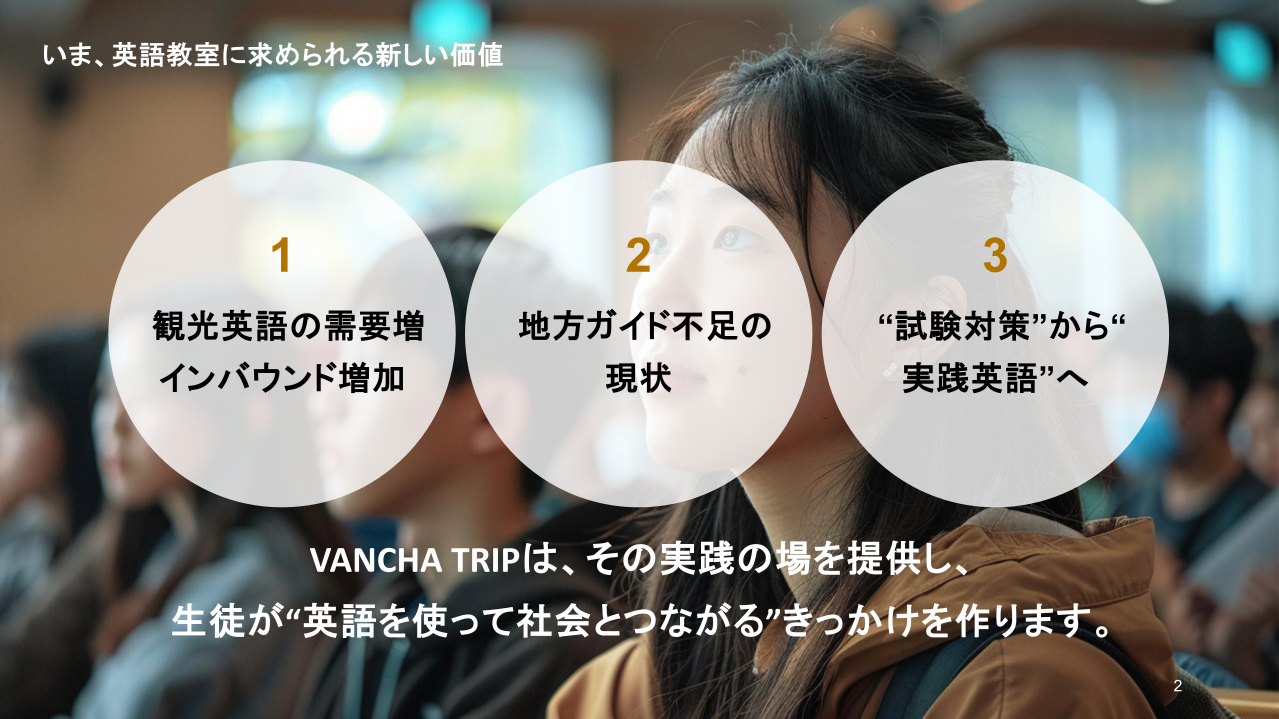 教室で学んだ英語が、地域観光の現場で実践に変わる。英会話講師・スクール向けに、旅×英語の新しい学びの形を「VANCHA TRIP」で提案します。