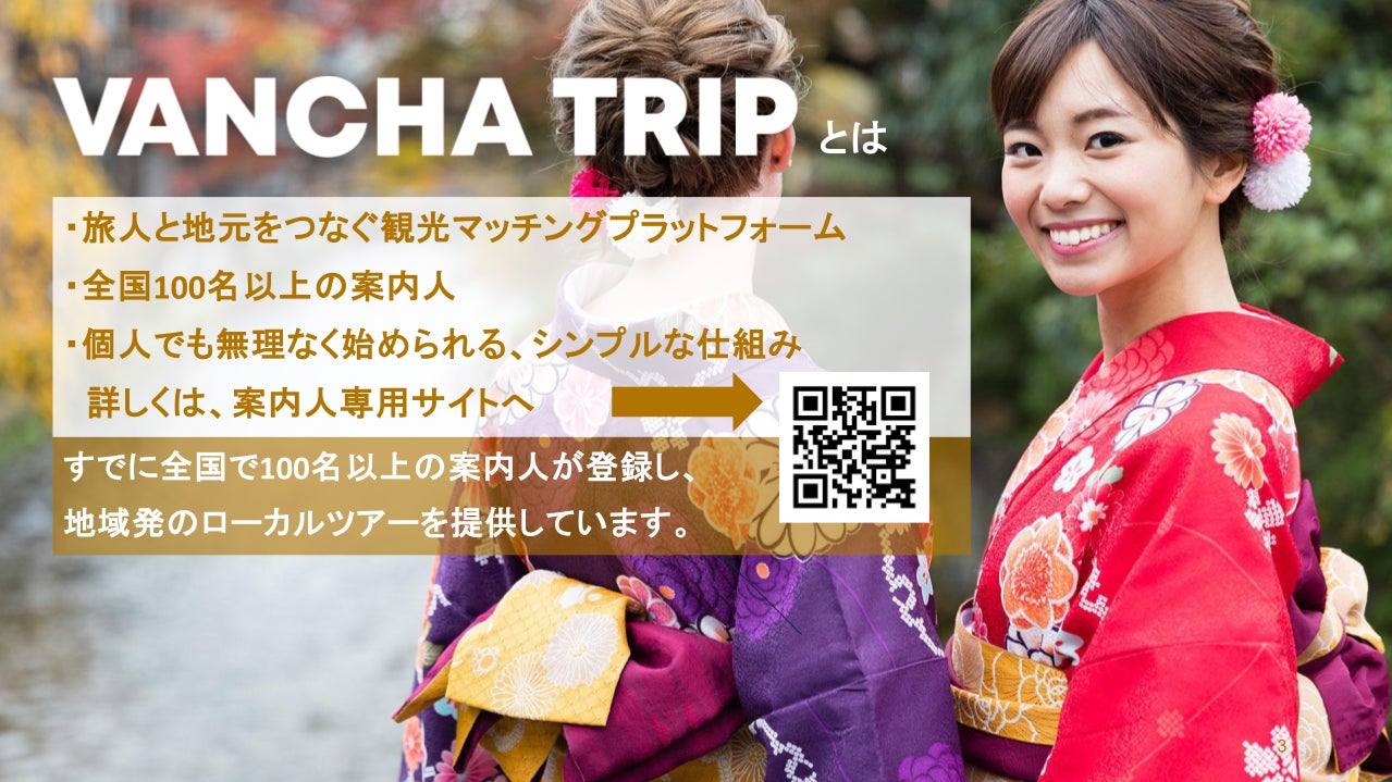 VANCHA TRIP は、訪日外国人旅行者と、地域に暮らす人(案内人)をつなぐ観光マッチングサービスです。