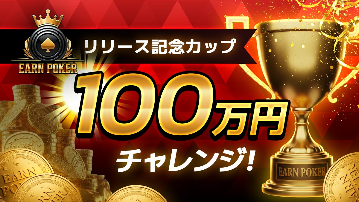 Earn Poker正式リリースを記念して、総額100万円分の報酬をかけた「100万円チャレンジカップキャンペーン」を開催いたします。