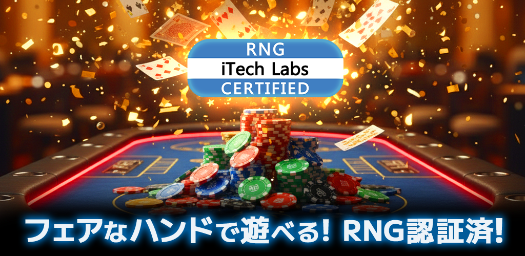 RNG認証(iTech Labs)を取得した公正なゲームシステムを採用し公平なプレイ環境を実現しています。