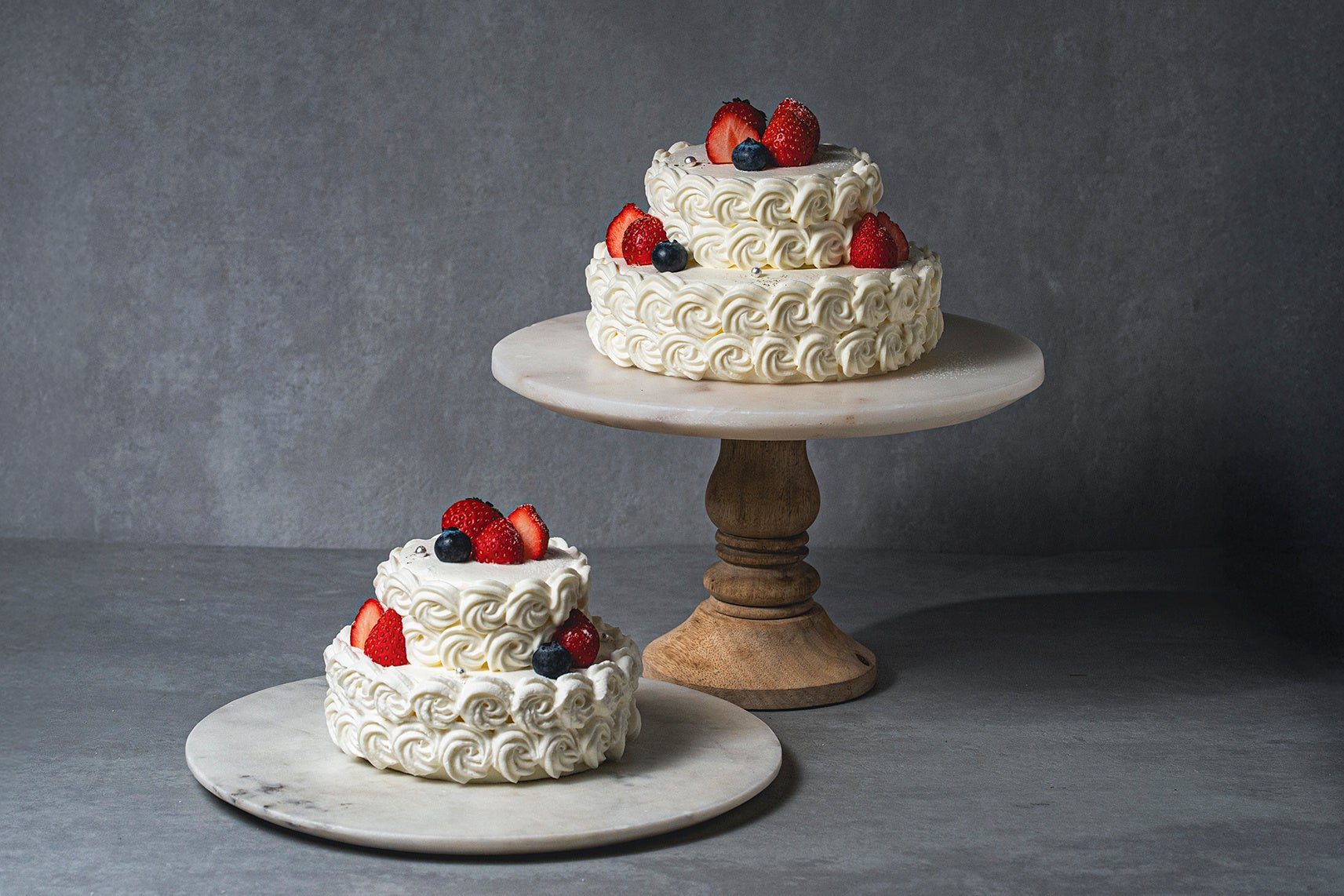 パブロフの定番、バラの花びらをイメージした華やかな絞りがかわいらしい2段のクリスマスケーキ。しっとりとした生地に、オリジナルクリームをサンドした、なめらかなくちどけのショートケーキです。