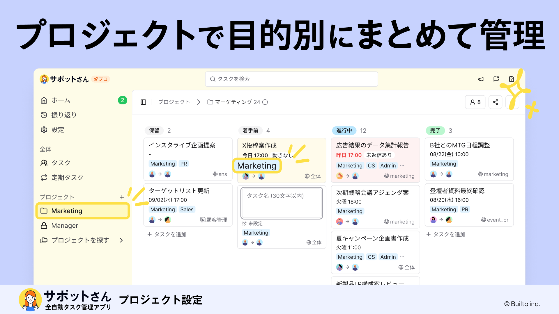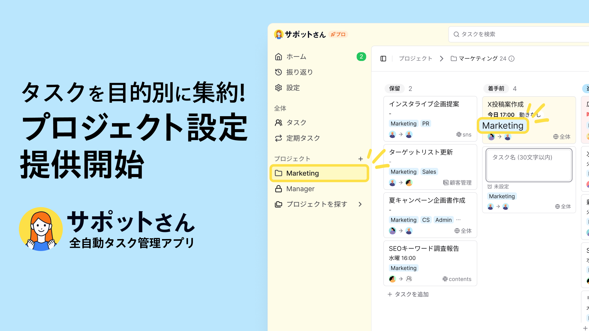 全自動タスク管理アプリ「サポットさん」、新機能「プロジェクト設定」を提供─ タスクを目的・チームごとに集約し、重複や漏れを防ぐ