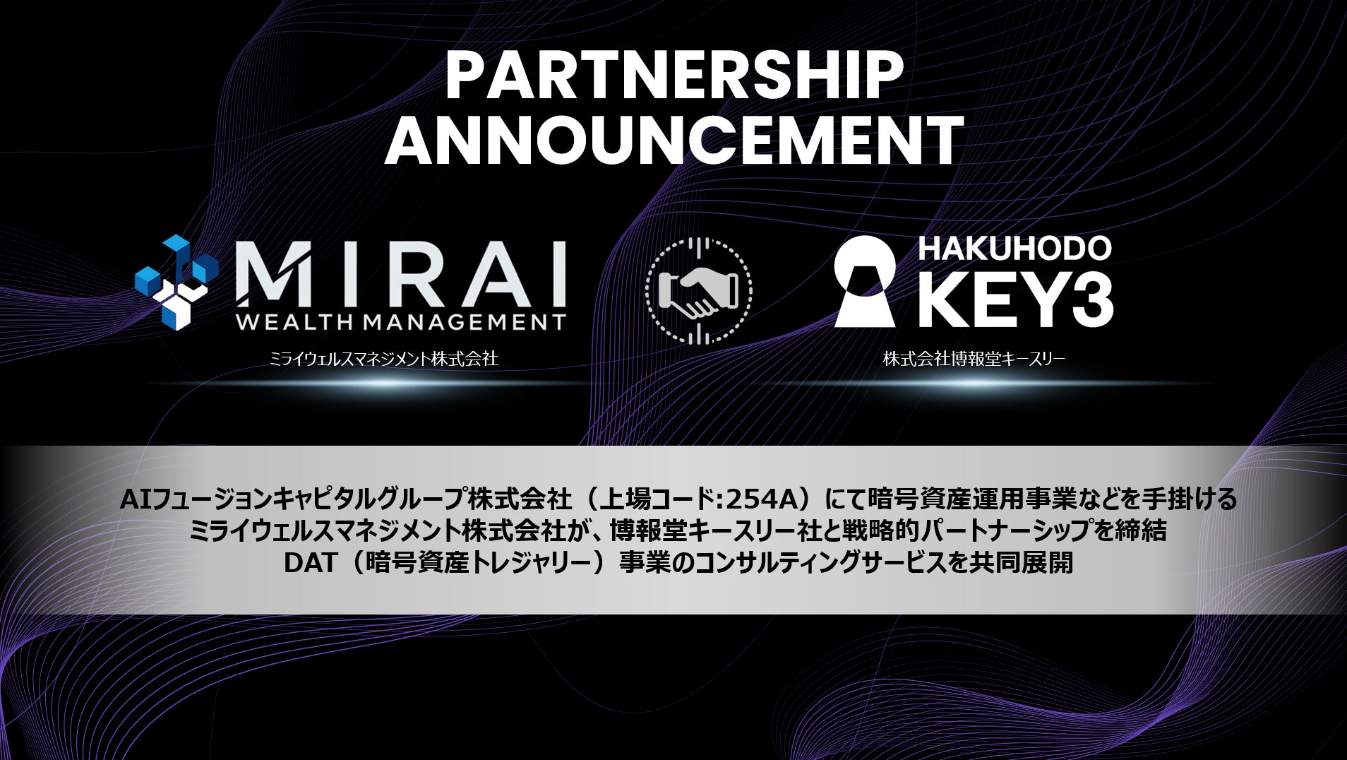 当社のグループ会社であるミライウェルスマネジメント株式会社(以下、「MWM」という)は、株式会社博報堂キースリー(以下、「博報堂キースリー」という)との戦略的パートナーシップ契約を締結(以下、「本提携」という)したことを、下記の通りお知らせいたします。