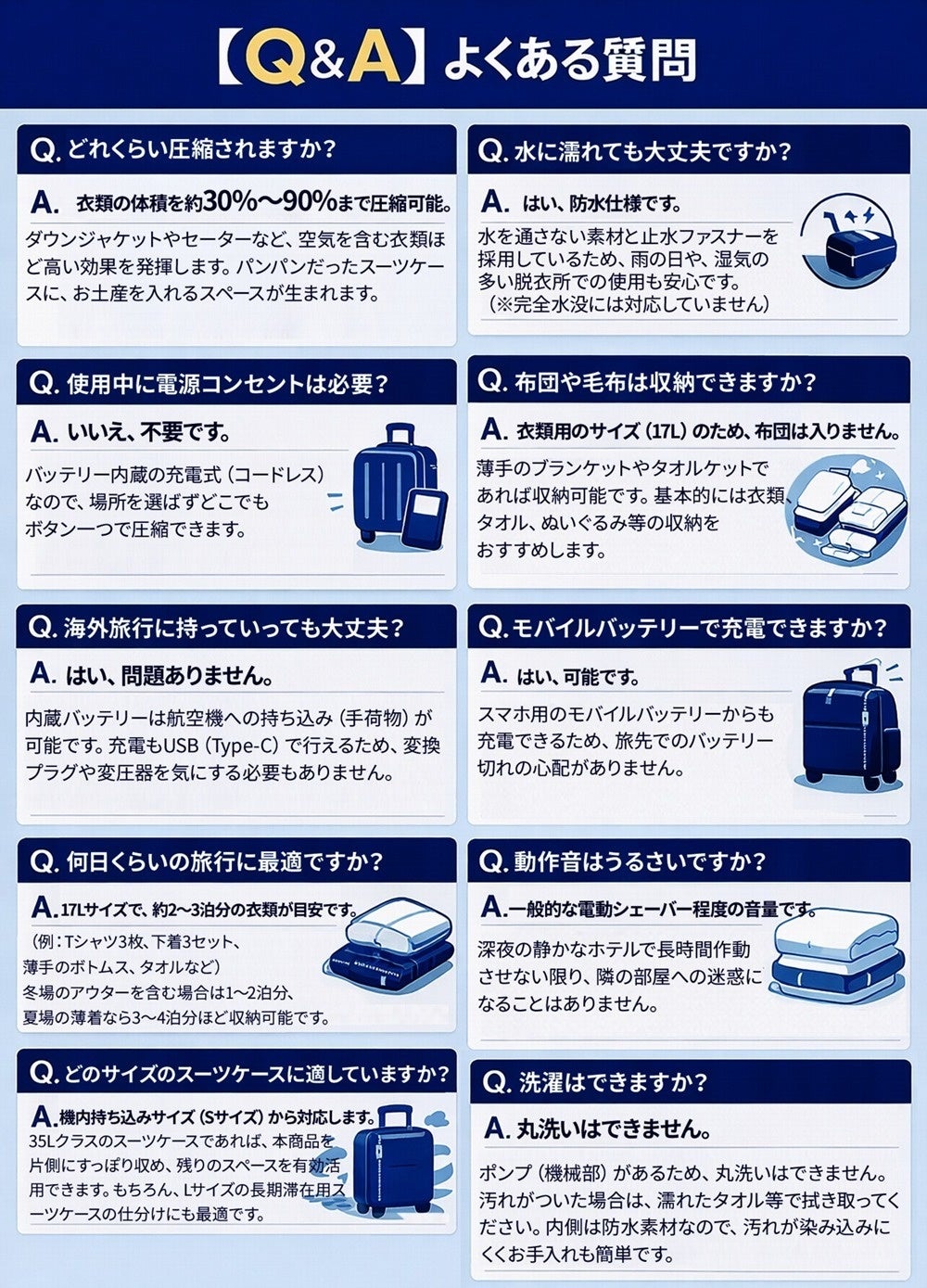 【圧縮袋革命】旅の常識を変える「電動ポンプ内蔵バッグ」がついに登場。ボタン1つで荷物が消える。