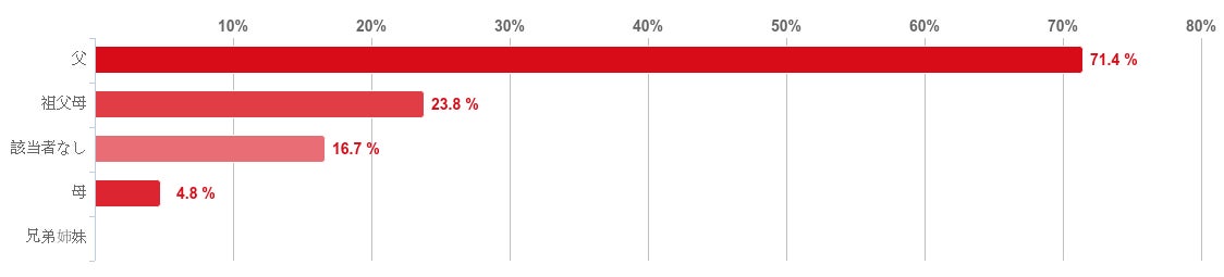 「父」と回答した人が71.4%と7割を超えて最も多く、続いて「祖父母」との回答が23.8%と2番目に多かった。