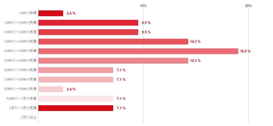 次いで、「1,000円~2,000円未満」と「2,000円~3,000円未満」が共に9.5%と続き、「2万円以上」と回答した人はいなかった。