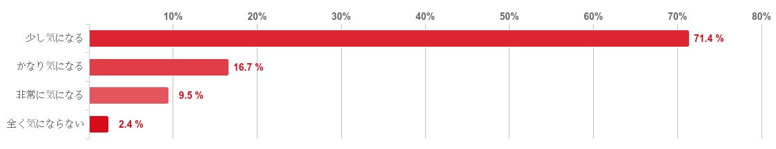 「少し気になる」と回答した人が71.4%と圧倒的に多く、「かなり気になる」(16.7%)と回答した人を大きく上回った。