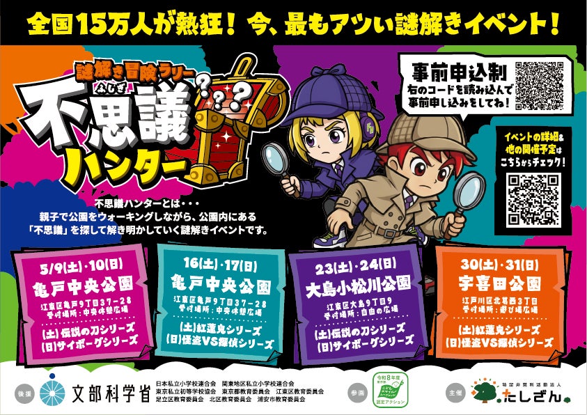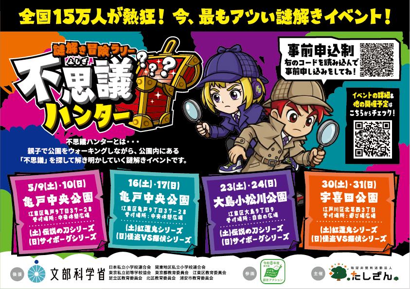 ▶ 親子向け謎解きイベント「不思議ハンター」の詳細・参加申し込みはこちら:https://www.npo-tashizan.jp/
