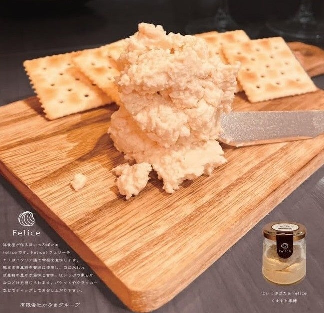 洋食屋が作る手作りほいっぷばたぁ「Felice」イタリア語で”幸せな”の意味です。熊本県産の黒糖を使った柔らかい風味のデザートばたぁ。お好きなパンやバケットにつけてお召し上がりください。