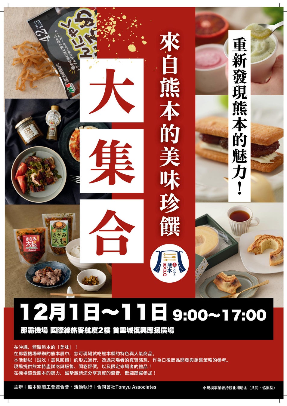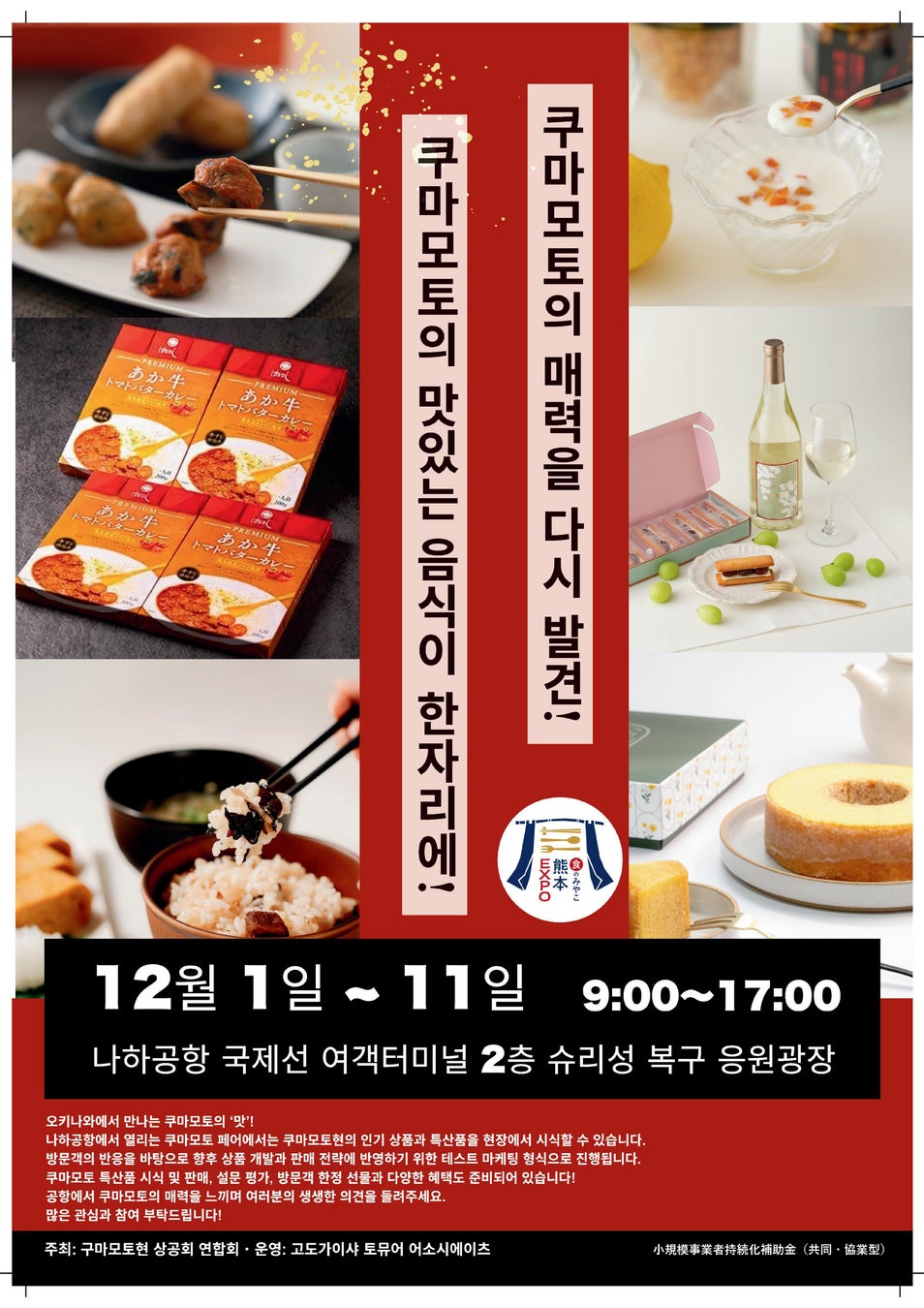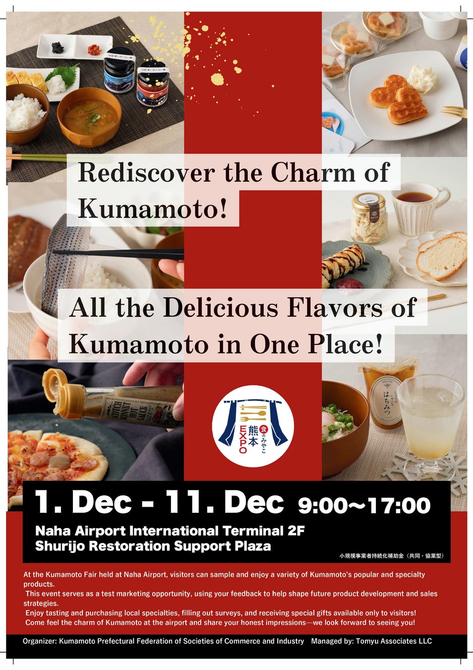 熊本県内の絶品グルメが一堂に会する催事販売会「食のみやこ“熊本 EXPO”」第2弾を、令和7年12月1日(月)~12月11日(木)に那覇空港・国際線ターミナル2階(YUINICHI広場)にて開催します。