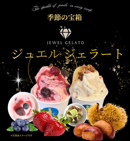 宝石箱をあけるようなワクワク感を味わえるジェラート『季節の宝箱ジュエル』自社牧場や県産の旬のフルーツを詰め込んだジェラートに果実やナッツ等多彩なトッピングを重ねた贅沢な大人向けスイーツです。