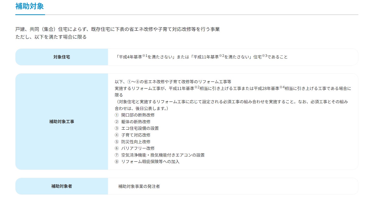 これは、各省庁が「住宅全体の省エネ性能向上を伴う改修を重視する」という方向性を明確にしているためです。