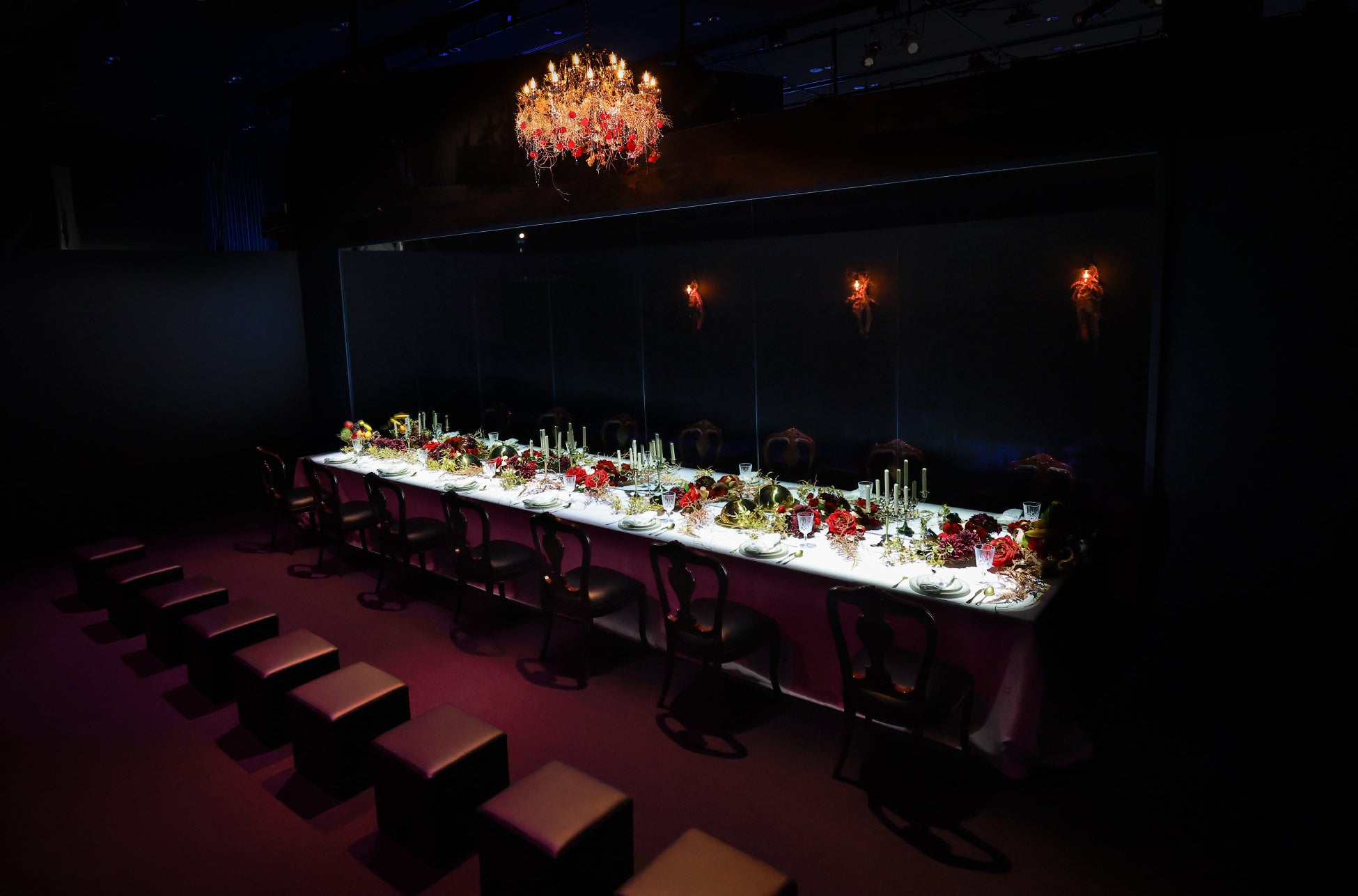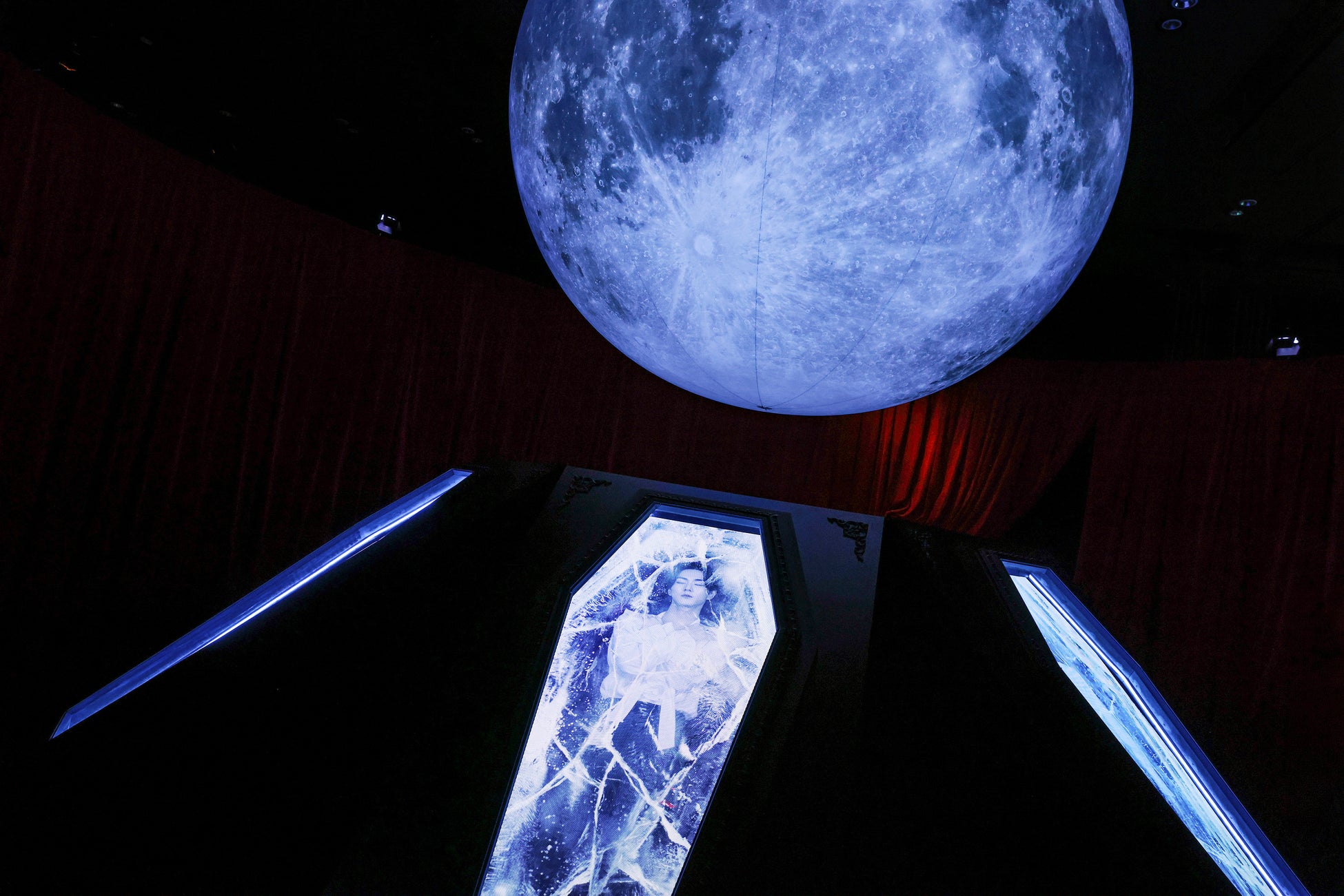 本プロジェクトにおいて、弊社は空間演出と体験設計のパートナーとして、HYBE JAPAN社が描く『楽曲世界を五感で体感する』という独占的なビジョンと各展示空間の構成企画の具現化に注力しました。演出においては、ヴァンパイアの館というコンセプトを圧倒的なリアリティで空間へ定着させるべく、ヒビノ社の最新3D LED技術と連携。映像、照明、音響の連動性を極限まで高めることで、アーティストがその場にいるかのような臨場感を創出しました。これまでの物語を3次元の『空間体験』へと拡張させた、重層的な没入型エンターテインメントをぜひ全身で体感してください。