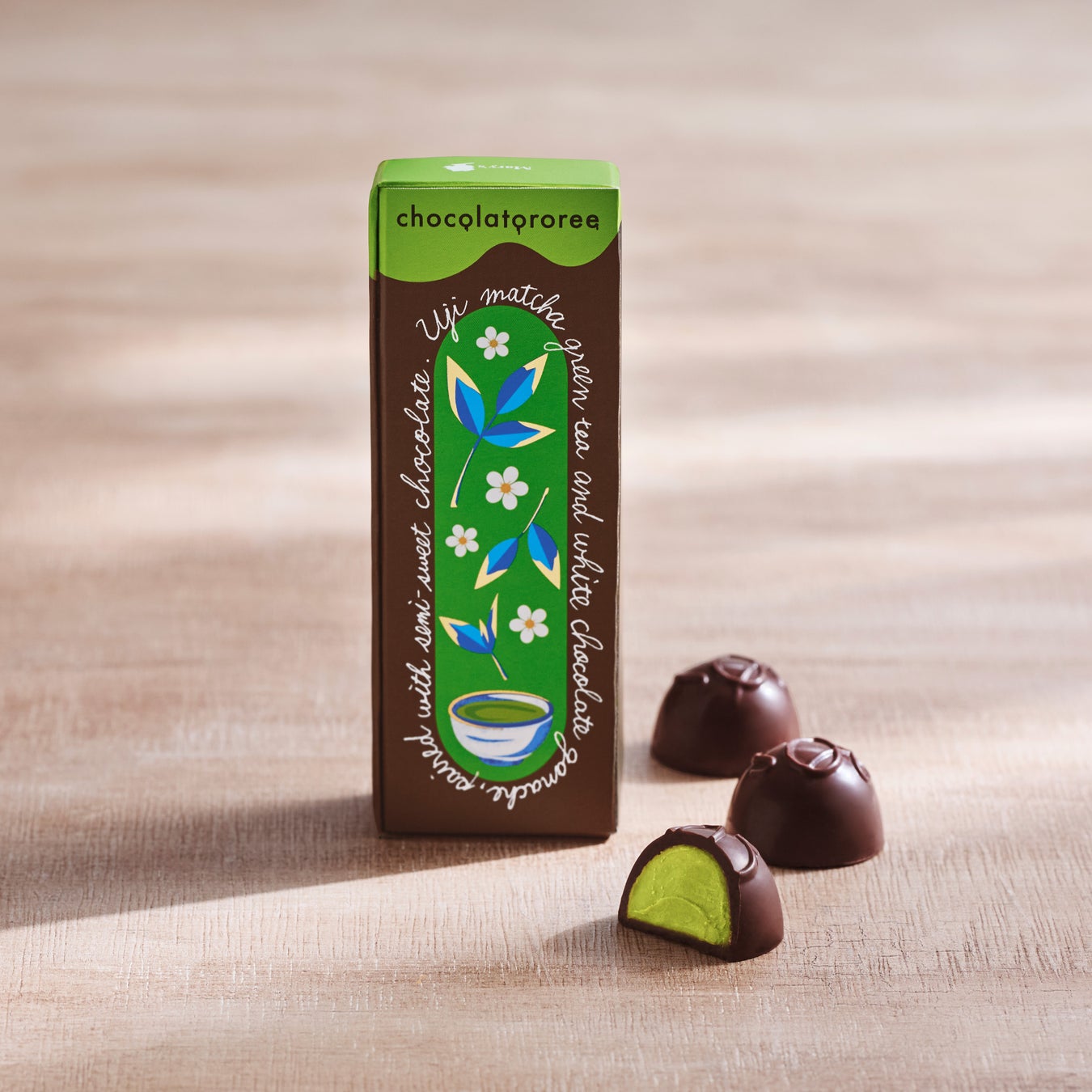 メリーのホワイトチョコレートに合わせてブレンドした、特製の宇治抹茶を使用。