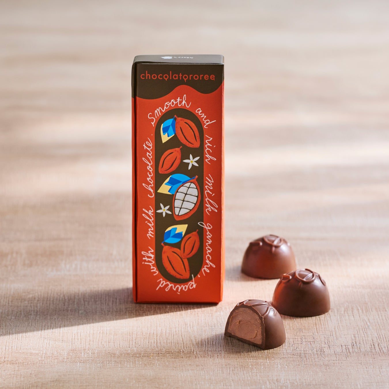 こだわりのミルクチョコレートに練乳とブルボンバニラ香料を加え、ミルキーでありながらも奥行きのある味わいに仕上げました。