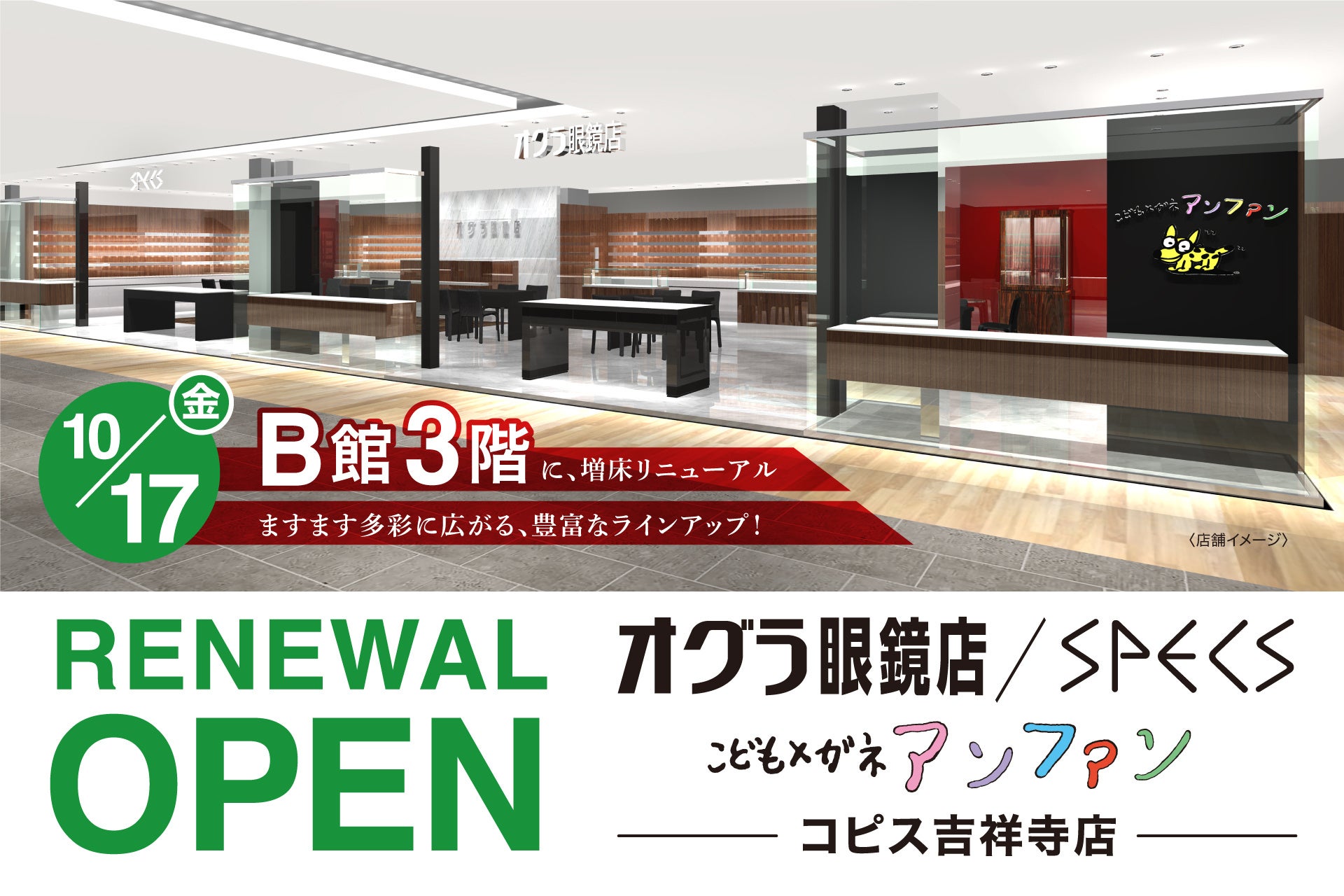 「オグラ眼鏡店」「こどもメガネ アンファン」を展開している株式会社オグラ(本社:東京都千代田区、代表取締役社長:小倉 信典)は、2025年10月17日(金)、「オグラ眼鏡店/SPECS コピス吉祥寺店」として、コピス吉祥寺B館3階に増床リニューアルオープンいたします。