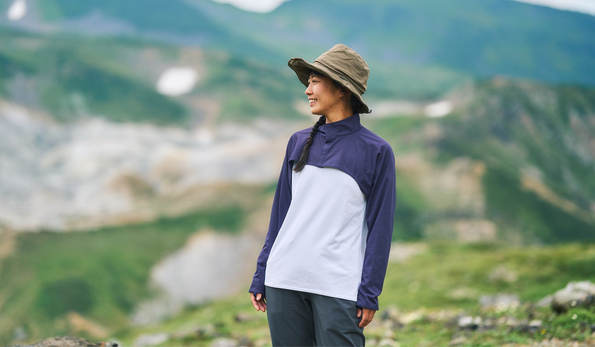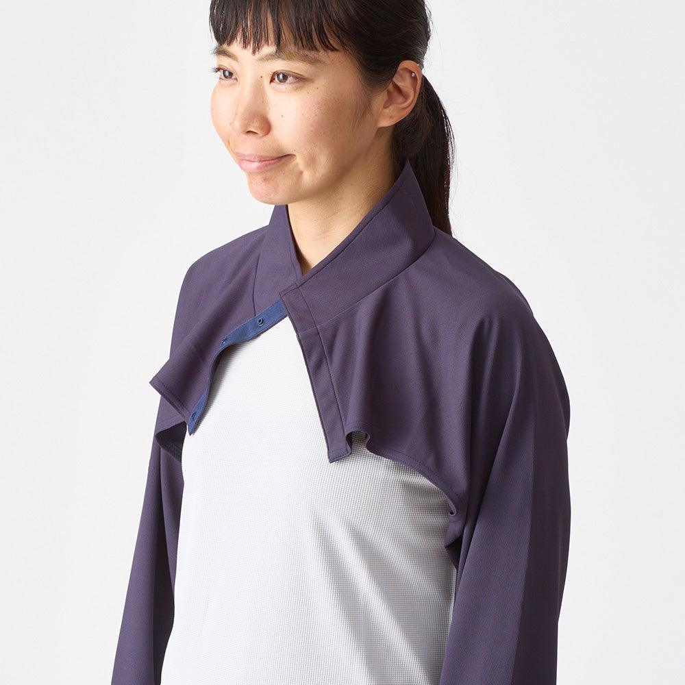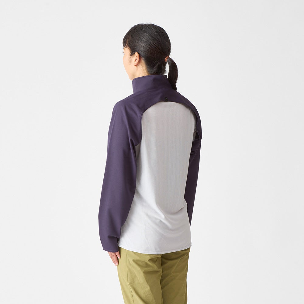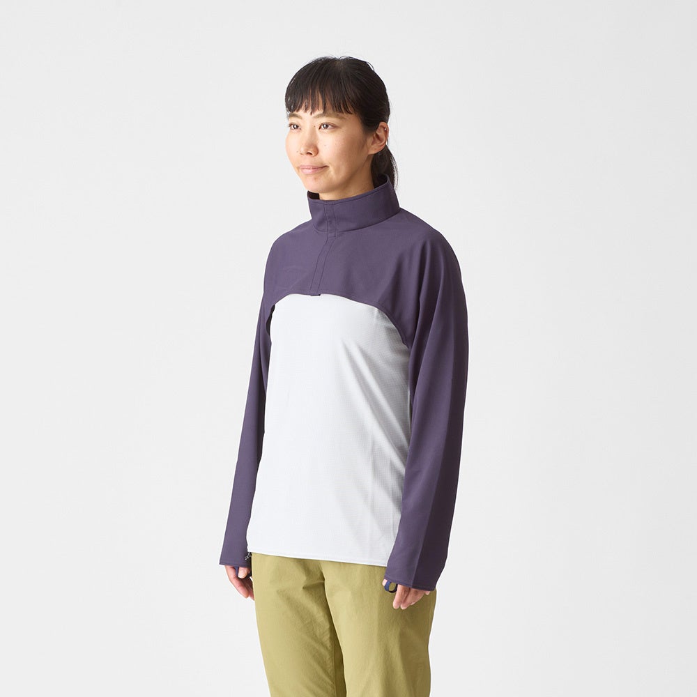 Tシャツの上からサッと着られて、腕や首回りをカバーできます。ザックを背負ったままでも着用が可能です。背中が開いているので着重ねる面積が狭く、真夏でも涼しく着用できます。