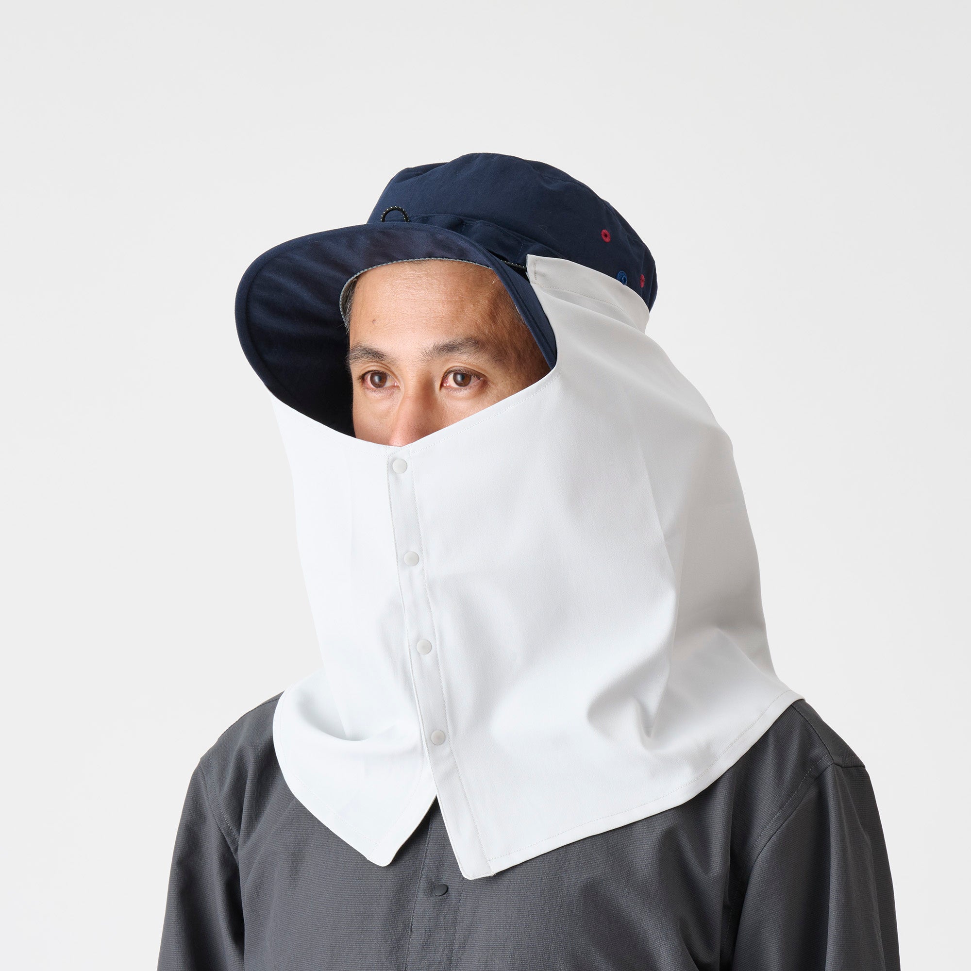 帽子に装着して顔まわり・首まわり・耳をしっかりガードするハット・キャップ用シェード。UPF50+と近赤外線遮蔽率70%以上により強い日差しから肌への負担を軽減。通気性と撥水性を備え、低山から高山まで幅広い山行で活躍します。