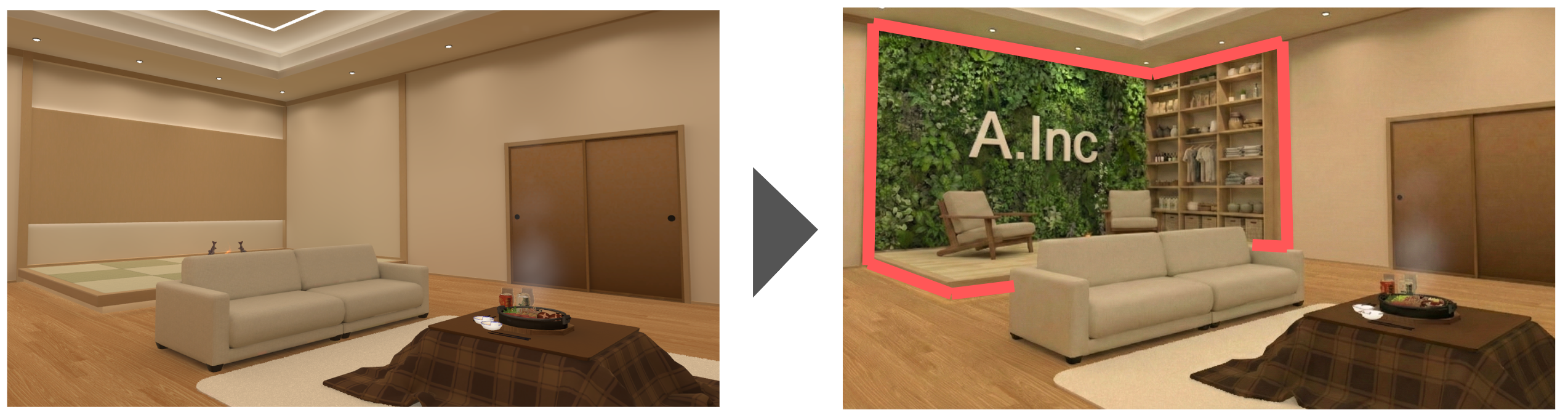 ひまり旅館やNAGiSAの部屋の一室、または全てを企業仕様に改装し、期間限定のコラボ空間として提供。商品展示、体験ブース、キャンペーン連動施策など、目的に応じた設計が可能です。