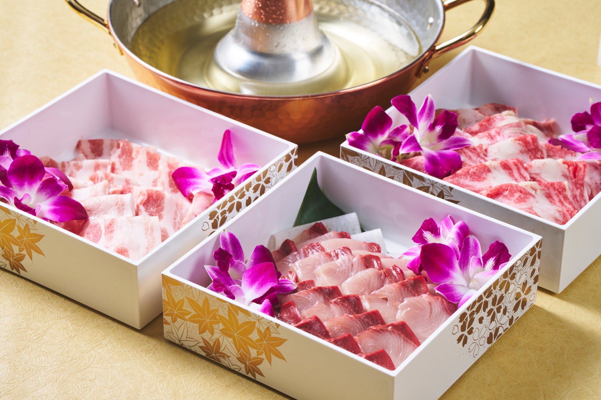 旬の食材を活用した会席やお弁当、海鮮丼に加え、沖縄県産もとぶ牛やあぐー豚のしゃぶしゃぶなど、素材の魅力と職人の技が光る多彩なメニューをご用意。一年の始まりを祝うにふさわしい、贅沢な味わいの数々をお楽しみください。