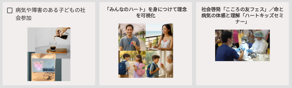 ハートのミッション「子どもの命と生活をつなぐ」活動を、皆さんとご一緒できる機会を心から楽しみにしております。