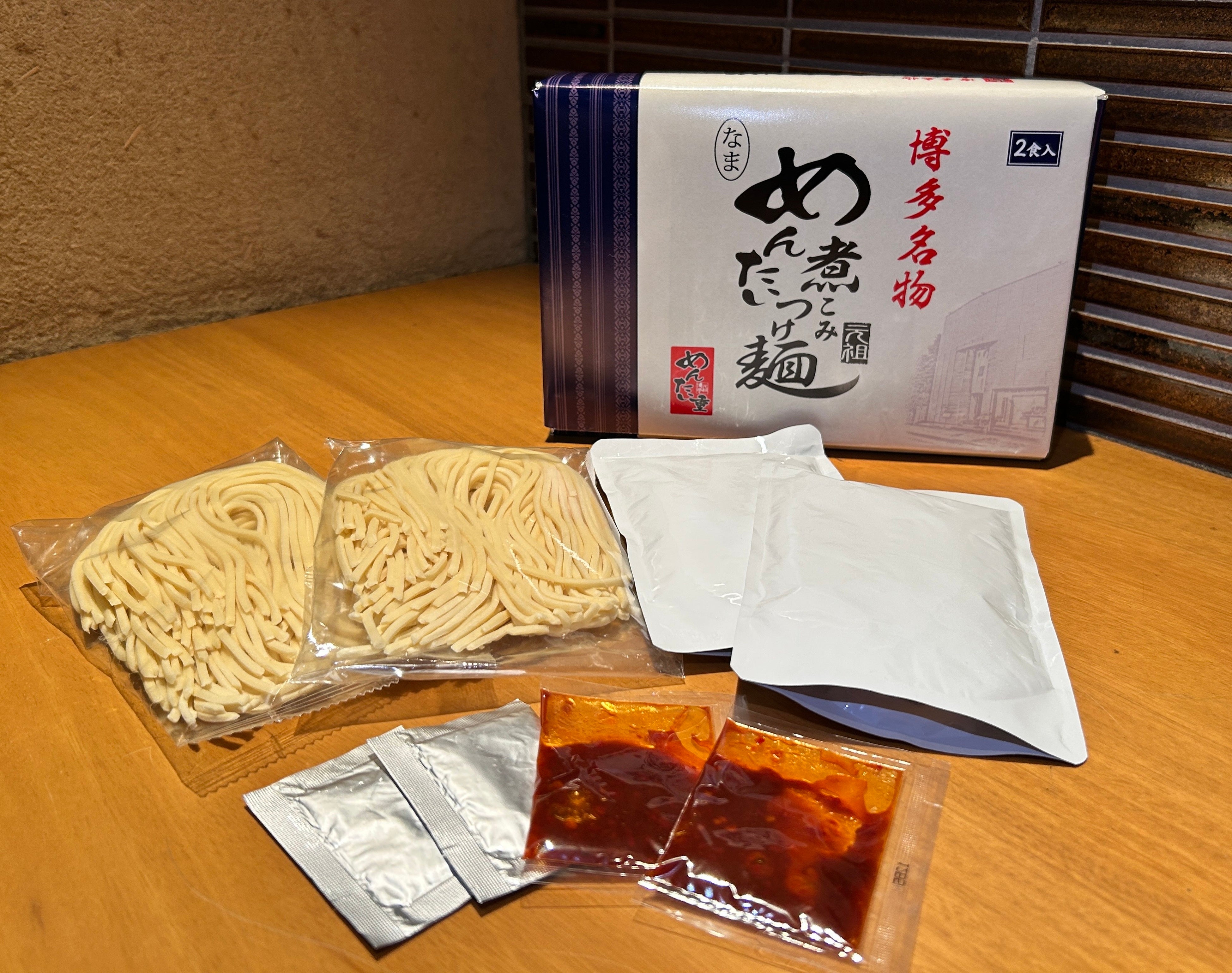 今まで1食包装だった「めんたい煮こみつけ麺」は、2食1箱の梱包をしている新パッケージを採用。ご自宅用はもちろん、帰省の際の手みやげや、ちょっとしたご挨拶にも最適な仕様です。