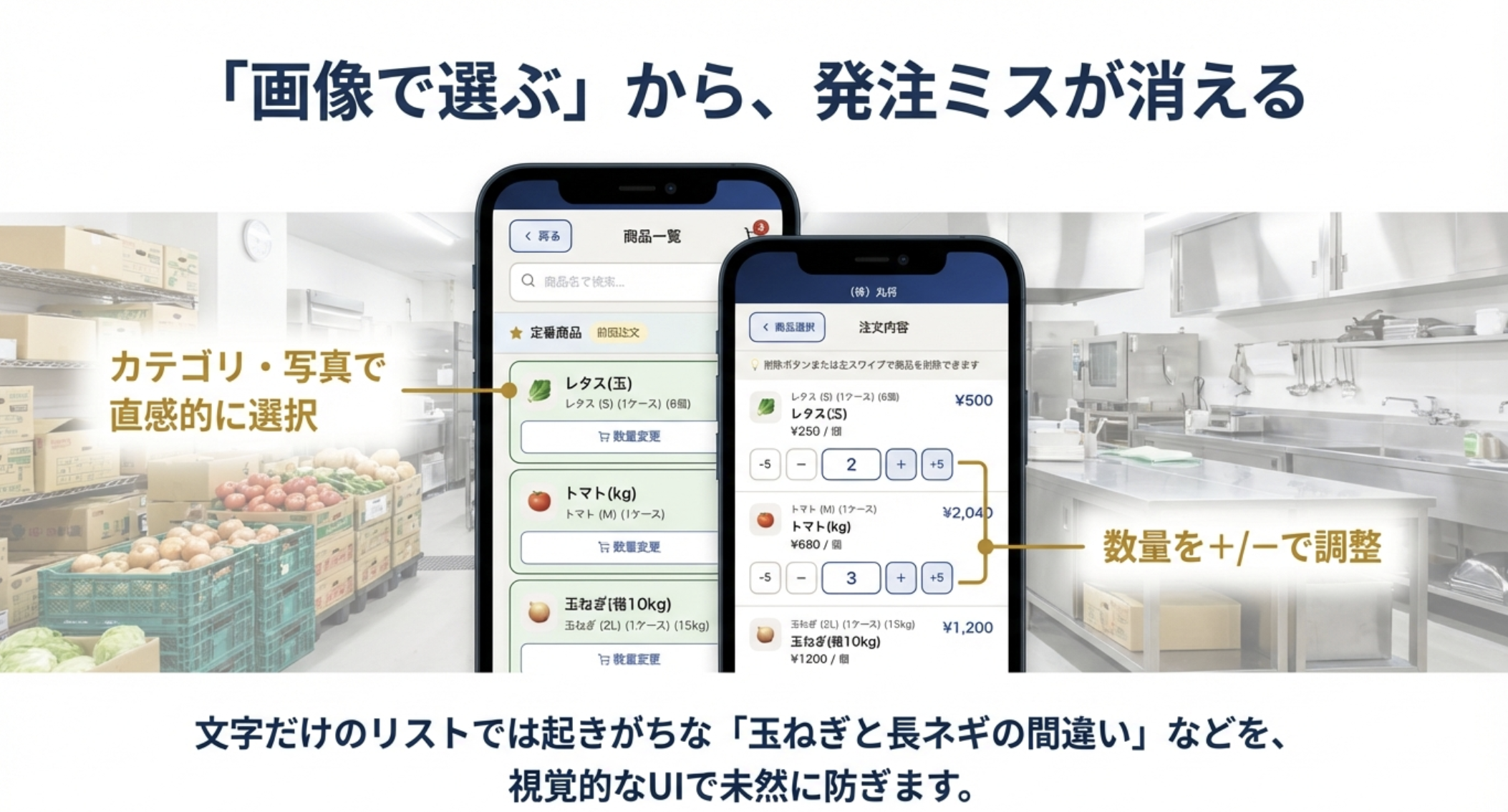 ■新機能:飲食店がスマホで“そのまま発注”。卸側も全員が同じ画面を見る