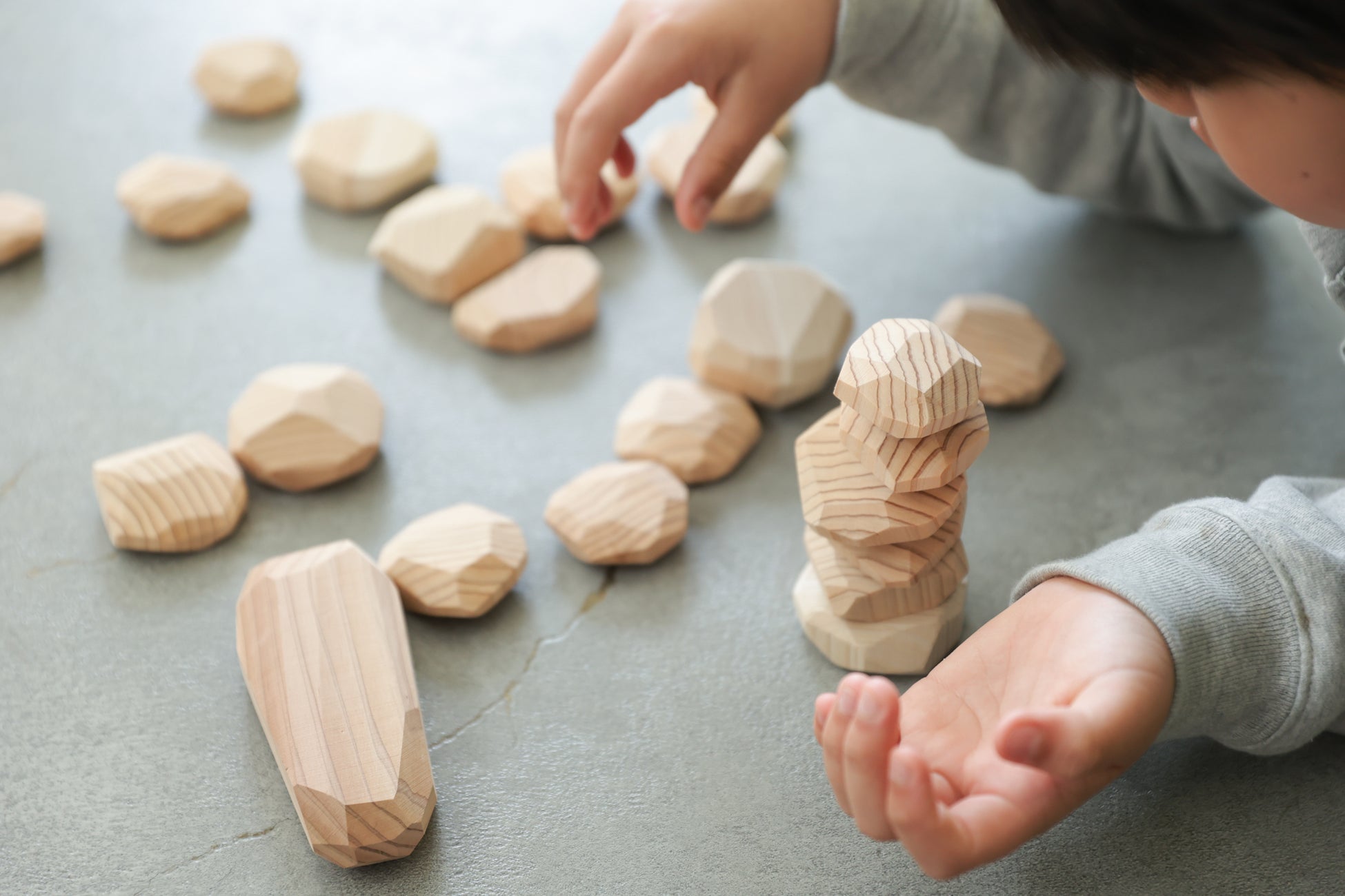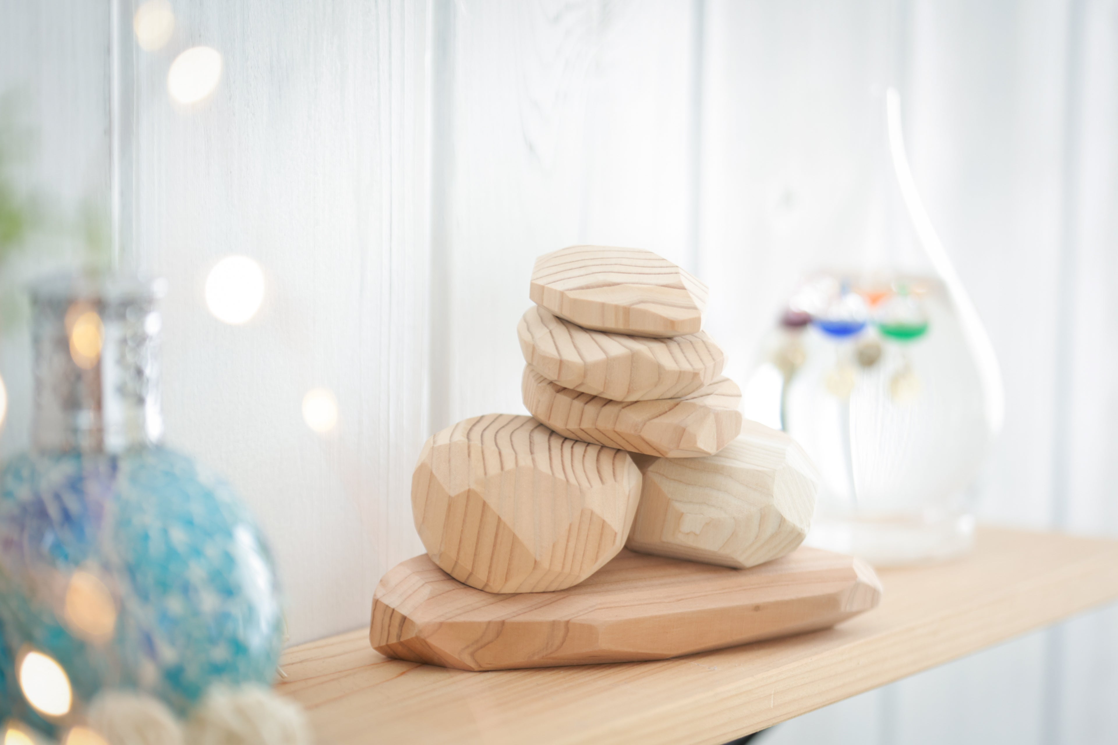 家庭での知育遊びに最適。 自然の造形がインテリアとしても美しく、親子で楽しめる。