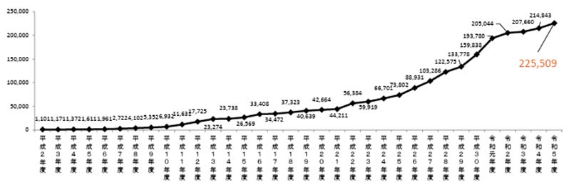 こども家庭庁によると、児童相談所における虐待の相談対応件数は令和5年度には22万5509件。